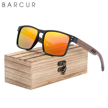 BARCUR الرجال النظارات الشمسية للرجال العلامة التجارية مصمم خشب الجوز الطبيعي نظارات شمسية النساء الاستقطاب النظارات UV400 نظارات Oculos