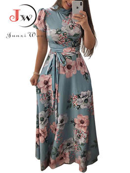 فستان ماكسي نسائي صيفي موديل 2022 فستان طويل بطبعة الزهور بتصميم بوهو بأكمام قصيرة فساتين حفلات أنيقة
