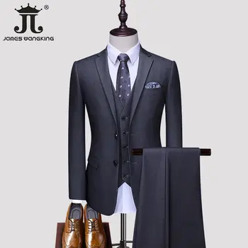( Jacket +Vest+ Pants ) Luxury Men’s High-end Brand Solid Color Business Office Suit 3Pcs & 2Pcs Groom Wedding Party Suit Tuxedo