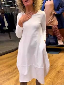 Women’s Solid O Neck Long Sleeve Dress New Autumn Winter Fashion Elegant Casual Black Dresses Women Clothes