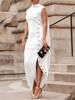 Freeacy Side Buttoned Solid Color Evening Dress for Women 2025 Spring Summer Fashion High Neck Sleeveless Maxi Dresses