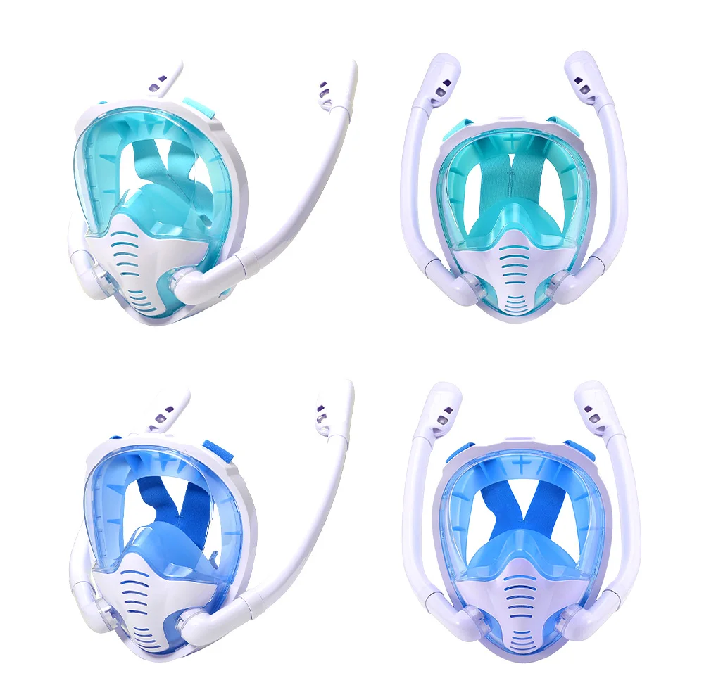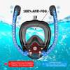 قناع غص كامل الوجه 180 درجة رؤية بانورامية من السيليكون الجاف العلوي نظارات السباحة والغطس مع 2 غص مضاد للضباب ومضاد للليا