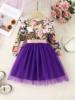 Girls’ Knitted Round Neck Long Sleeve Floral Print Mesh Dress Party Princess Dress