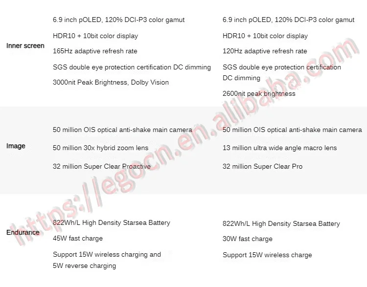 Home screen:6.9 FHD+ pOLED External screen*3.6 pOLED |