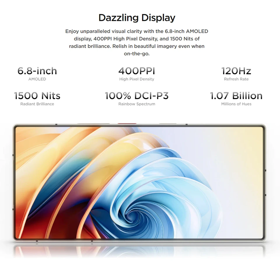 >Screen — 6.8 inch 120Hz AMOLED flexible Bar display ;1500nit