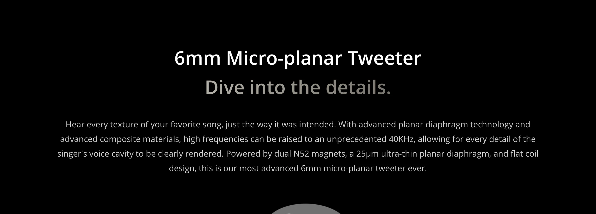 Sound Driver Size:11mm Bass Driver+6mm Micro-planar Tweeter