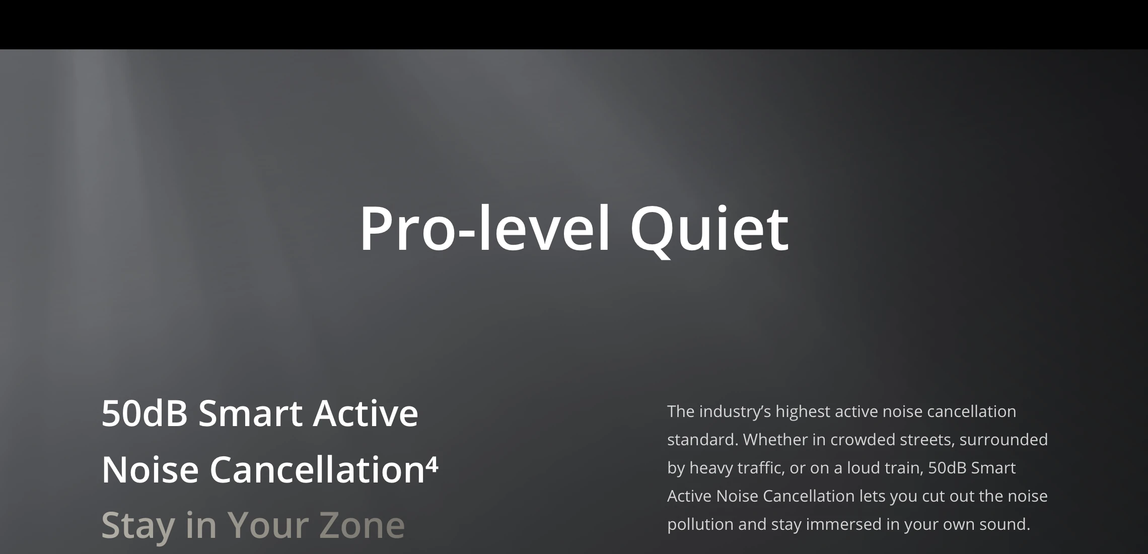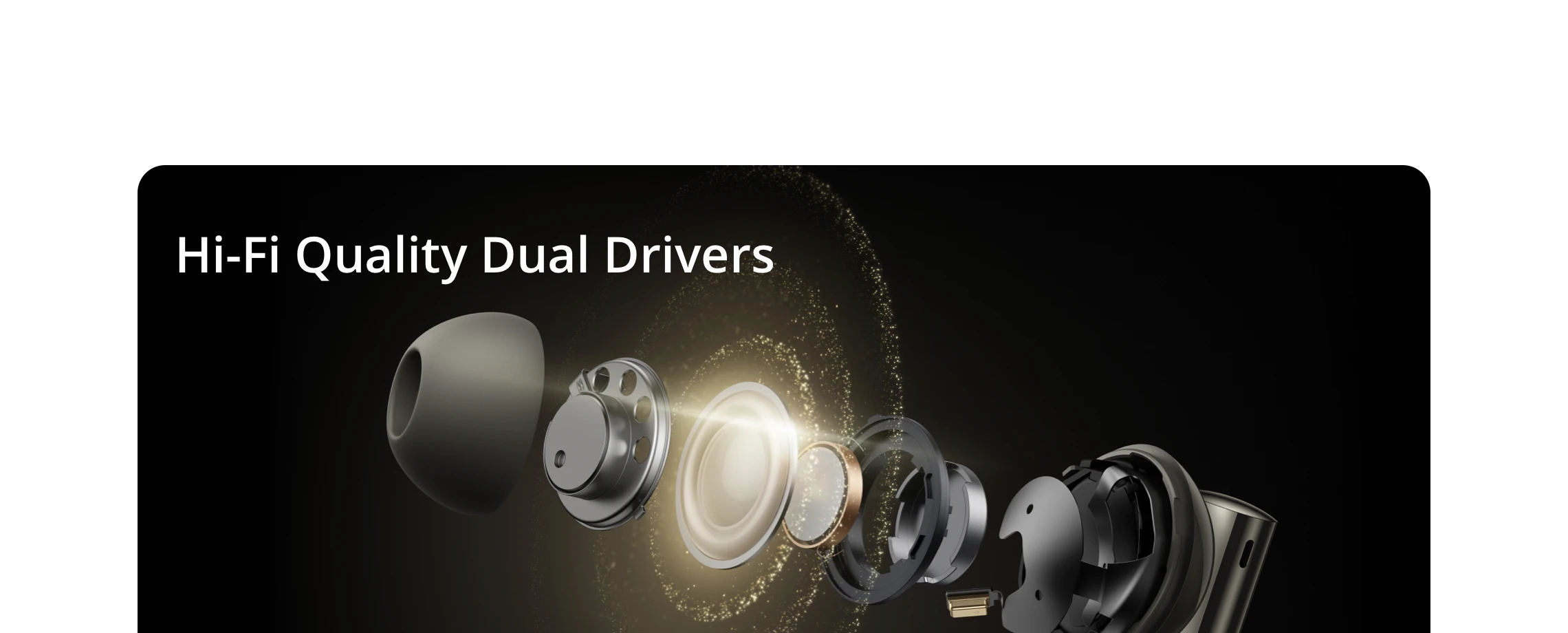 Hi-Fi Quality Dual Drivers | 50dB Smart Active Noise Cancellation | 360° Spatial Audio Effect