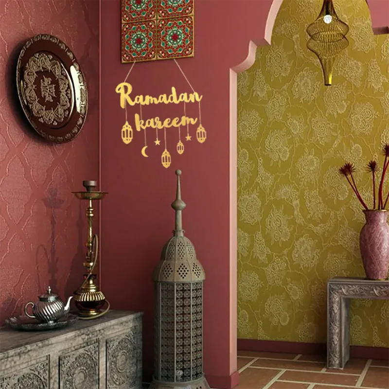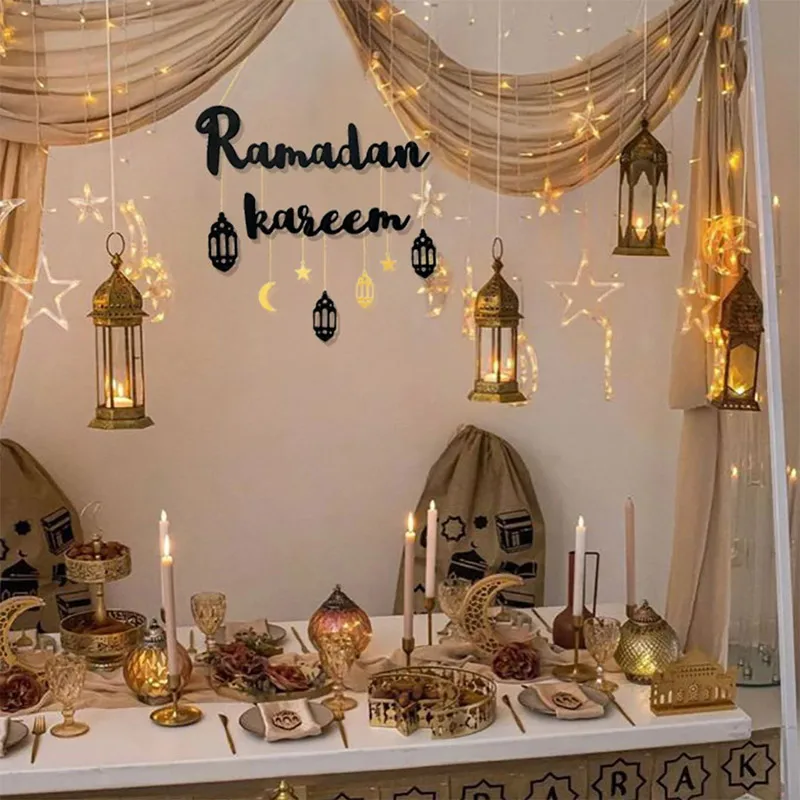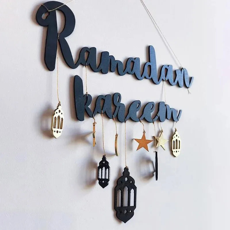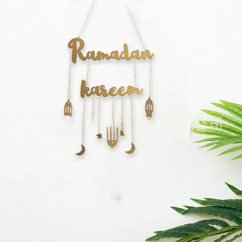 Gold Black Ramadan Wooden Wall Pendant Eid Mubarak Hanging Home Decoration 2025 Eid Al Fitr Muslim Islamic Party Supplies
