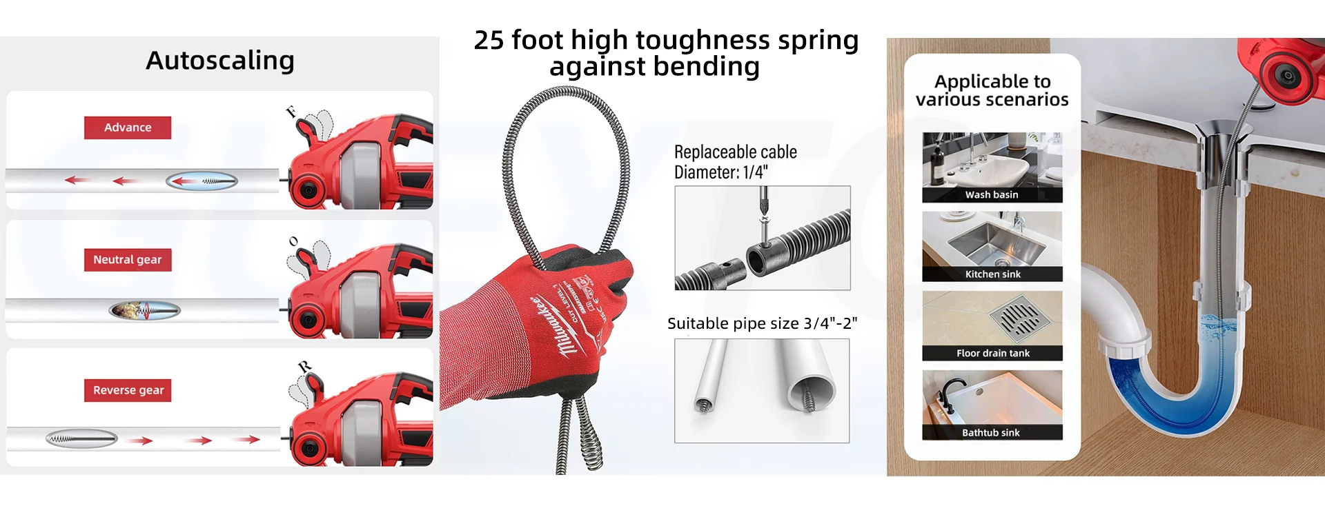 GUEX unclogging machines are equipped with high-performance motors or manual drives that produce powerful unclogging forces. Whether it is a clogged toilet, drain or floor drain, it can be opened quickly and effectively. High-pressure water jet unclogging removes stubborn grease, dirt and deposits without having to wait for the arrival of a professional, and users can use the unclogging machine to deal with the problem as soon as the blockage occurs, avoiding the adverse effects caused by the blockage.