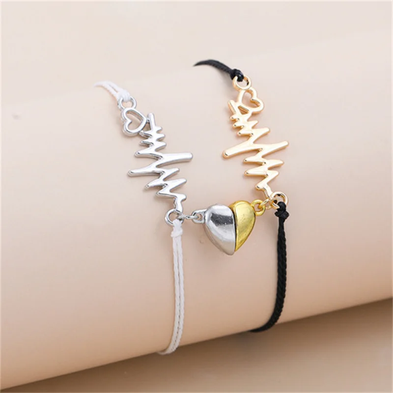 Handmade 2Pcs/Set Magnetic Couples Bracelet For Woman Adjustable Woven Bracelet Matching Best Friend Jewelry Gift