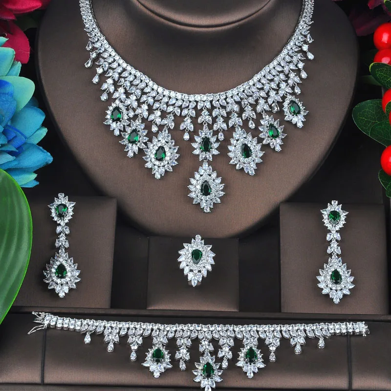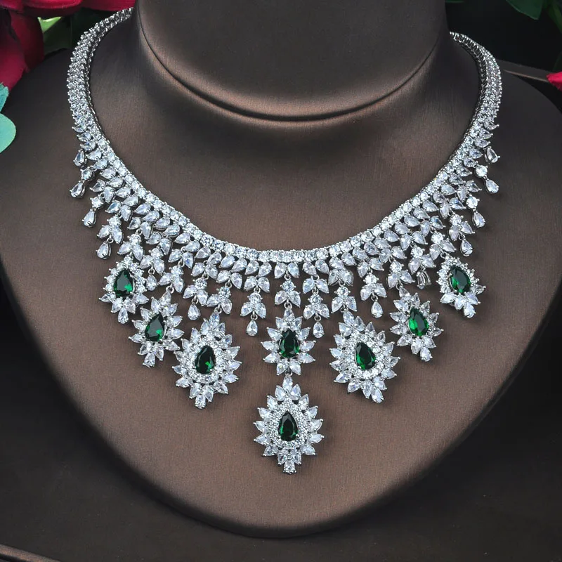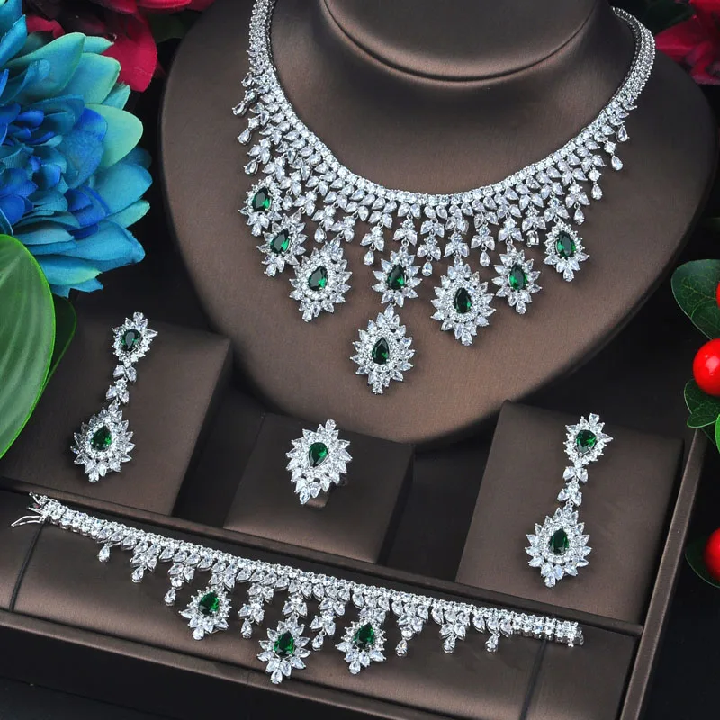 HIBRIDE العصرية زركون النساء التعشيب طقم مجوهرات الأخضر اللون قطرة الماء اكسسوارات الزفاف مجوهرات الأزياء هدايا N-721