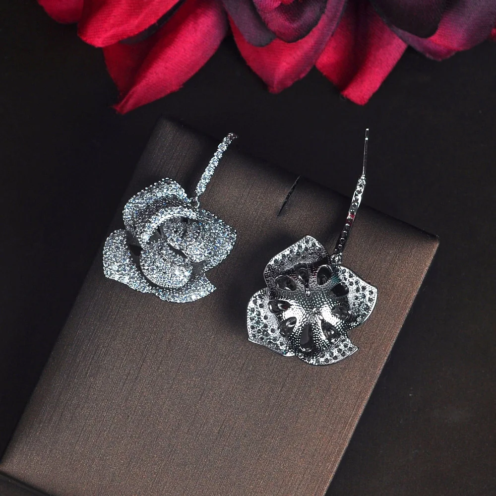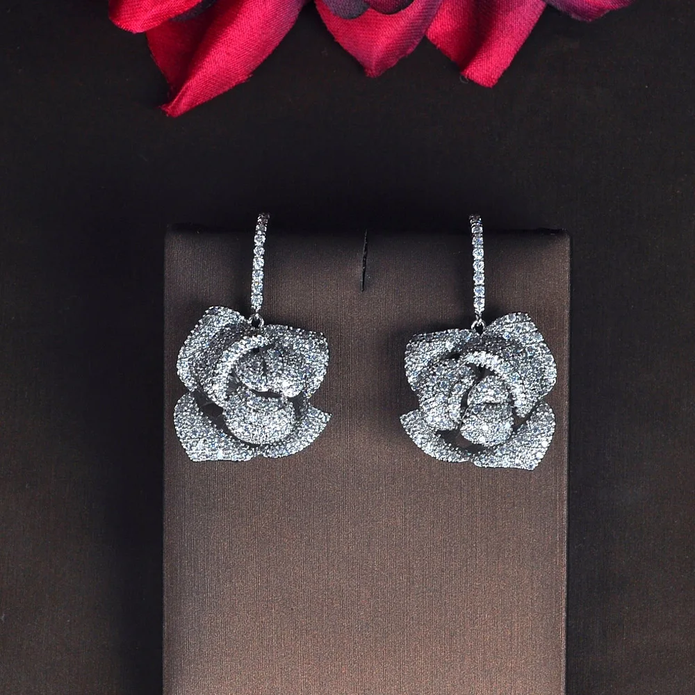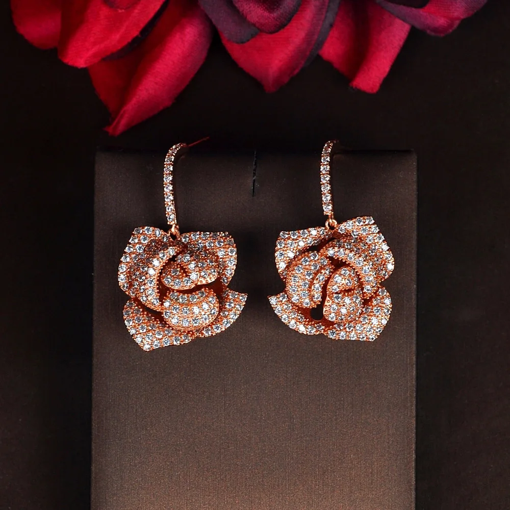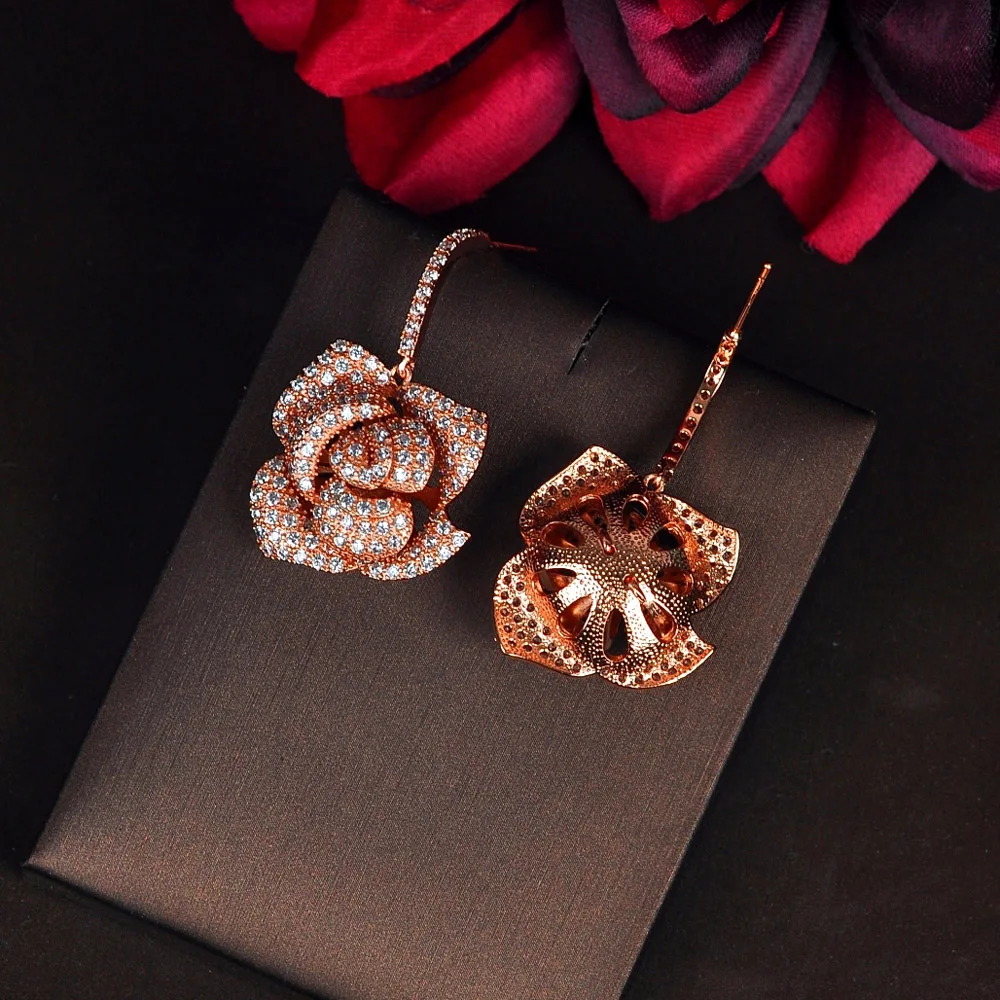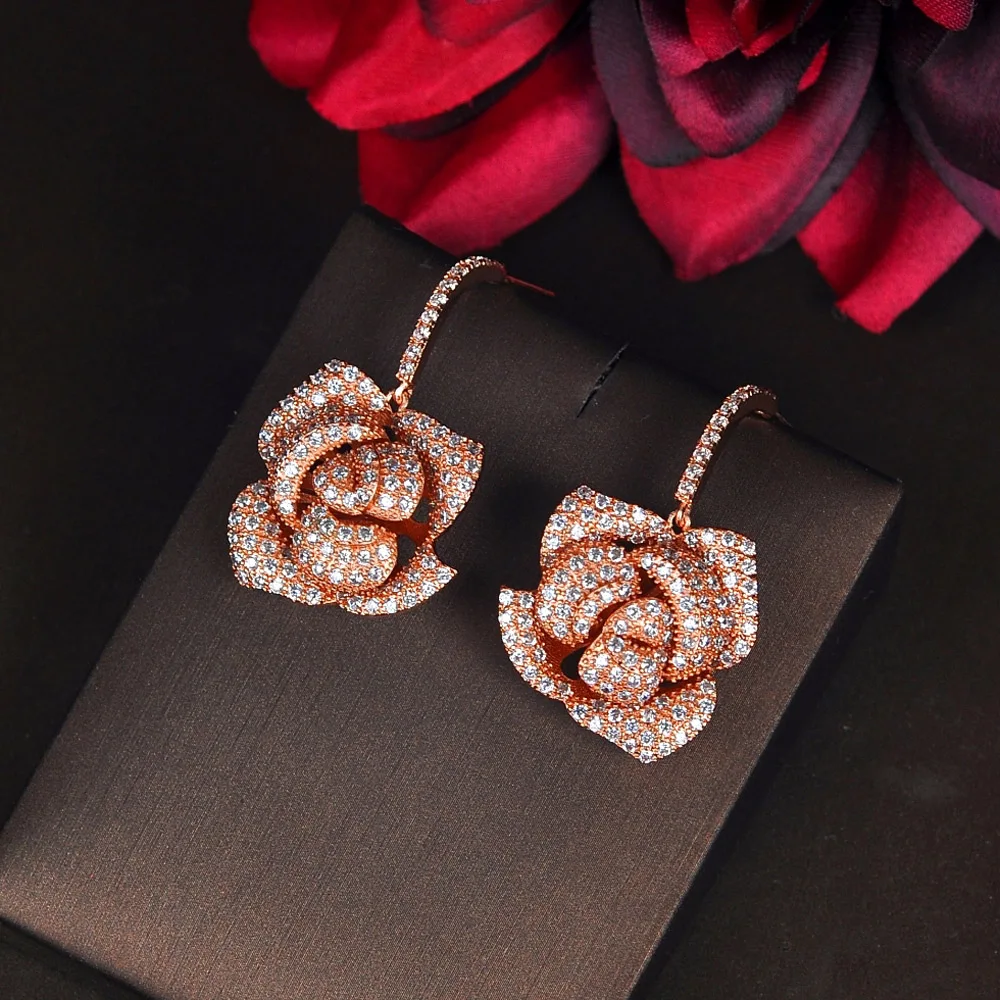 HIBRIDE الأزياء الفاخرة ارتفع الذهب اللون زهرة شكل استرخى أقراط للنساء مجوهرات مايكرو تشيكوسلوفاكيا تمهيد Brincos حزب تظهر E-865