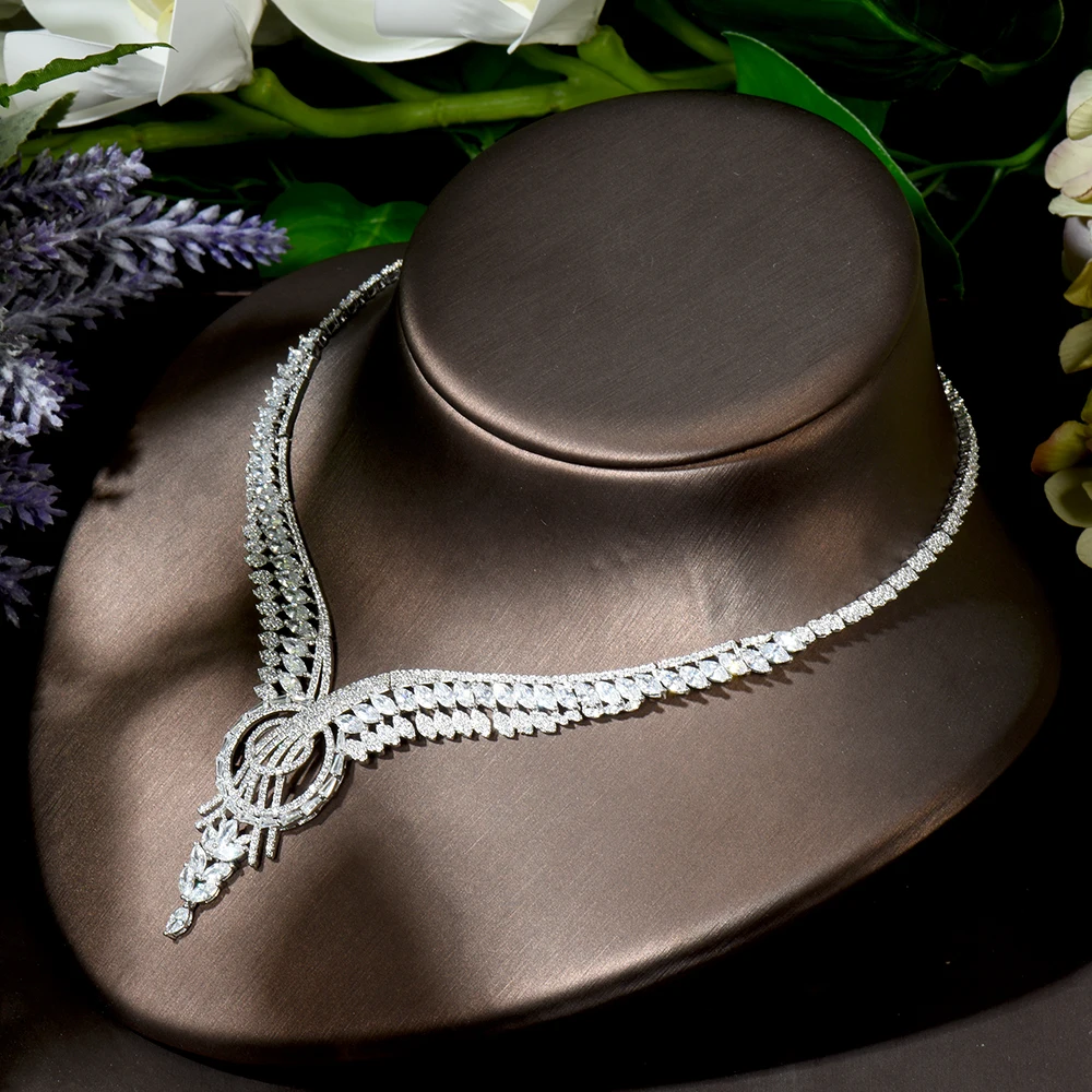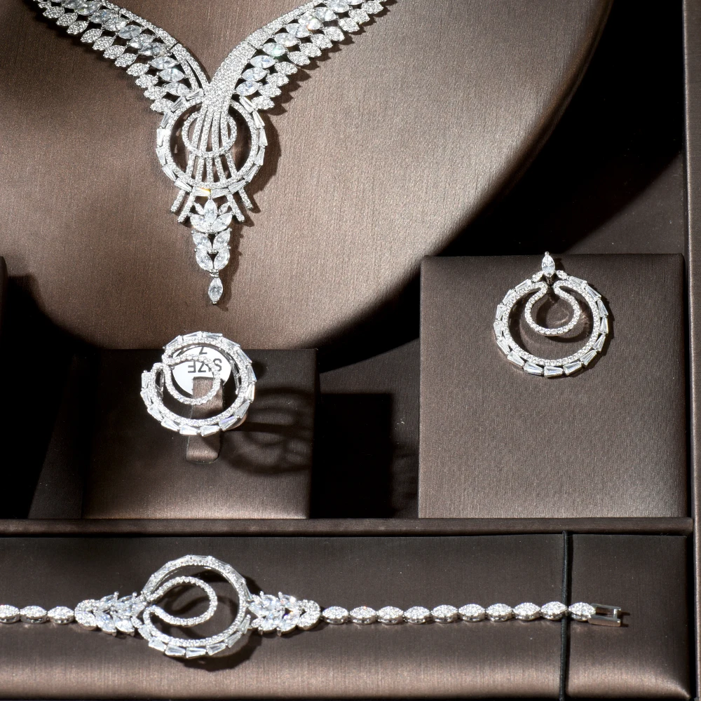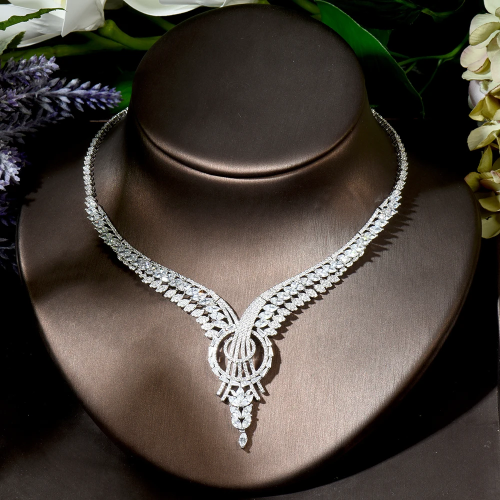 HIBRIDE الأزياء مكعب زركونيا القرط العصرية سحر دبي كبير جولة قلادة القرط مجموعات للنساء الزفاف مجوهرات N-1804