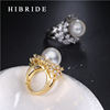 HIBRIDE الأزياء والمجوهرات المياه العذبة اللؤلؤ خواتم للنساء هدايا ، تشيكوسلوفاكيا كريستال الذهب اللون حزب مجوهرات خواتم QSP0010-8