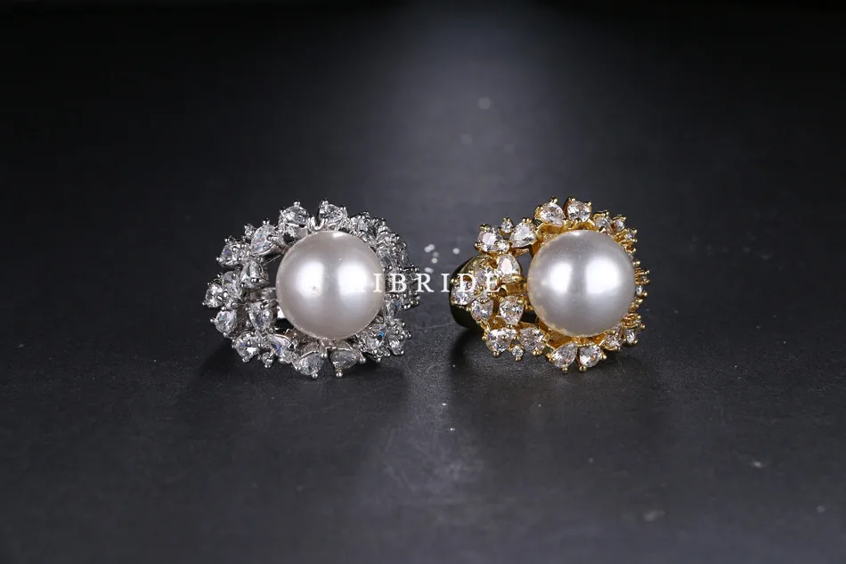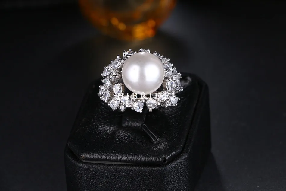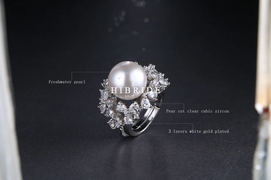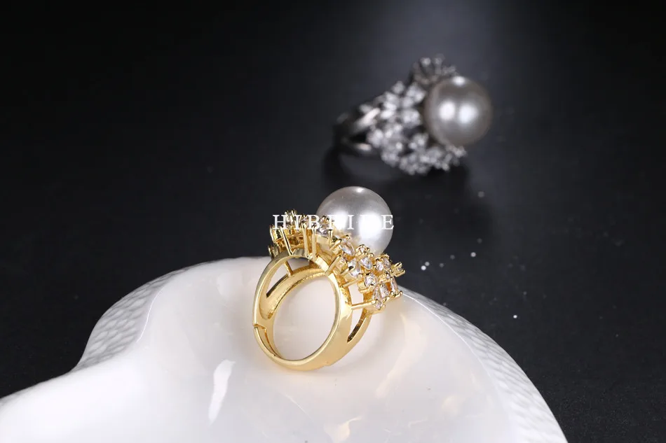 HIBRIDE الأزياء والمجوهرات المياه العذبة اللؤلؤ خواتم للنساء هدايا ، تشيكوسلوفاكيا كريستال الذهب اللون حزب مجوهرات خواتم QSP0010-8