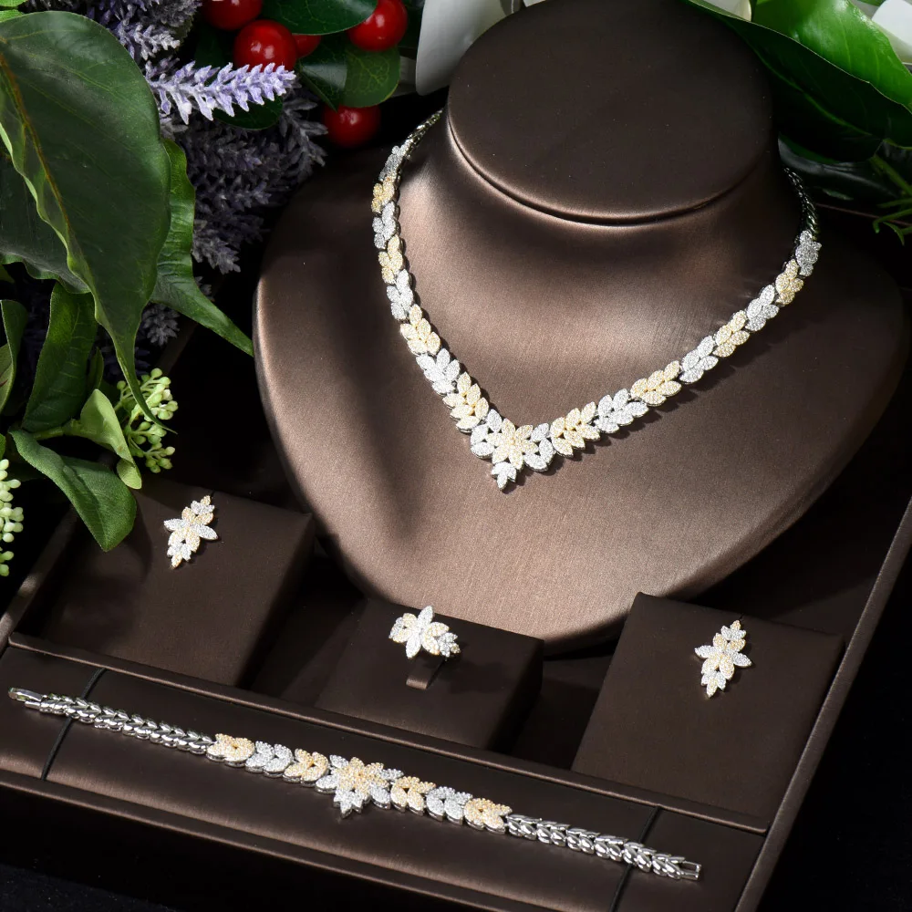 Leaf Shape CZ Jewelry Set Formal Occasion