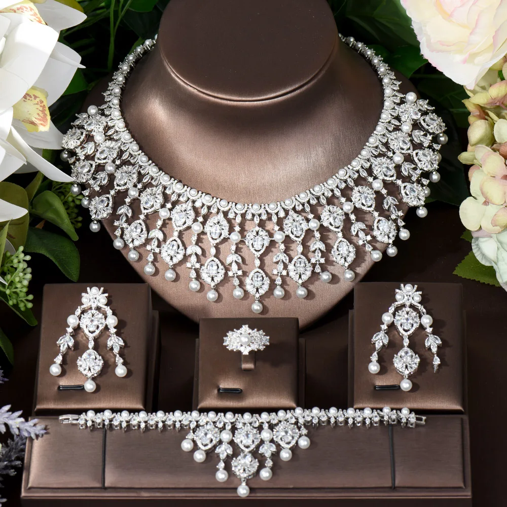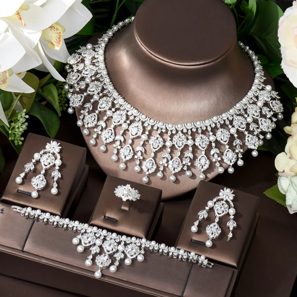 HIBRIDE العصرية اللؤلؤ والمجوهرات مجموعات للنساء حفل زفاف اكسسوارات تشيكوسلوفاكيا دبي ثوب زفاف إفريقي مجوهرات الرقص حفلة بيجو N-848