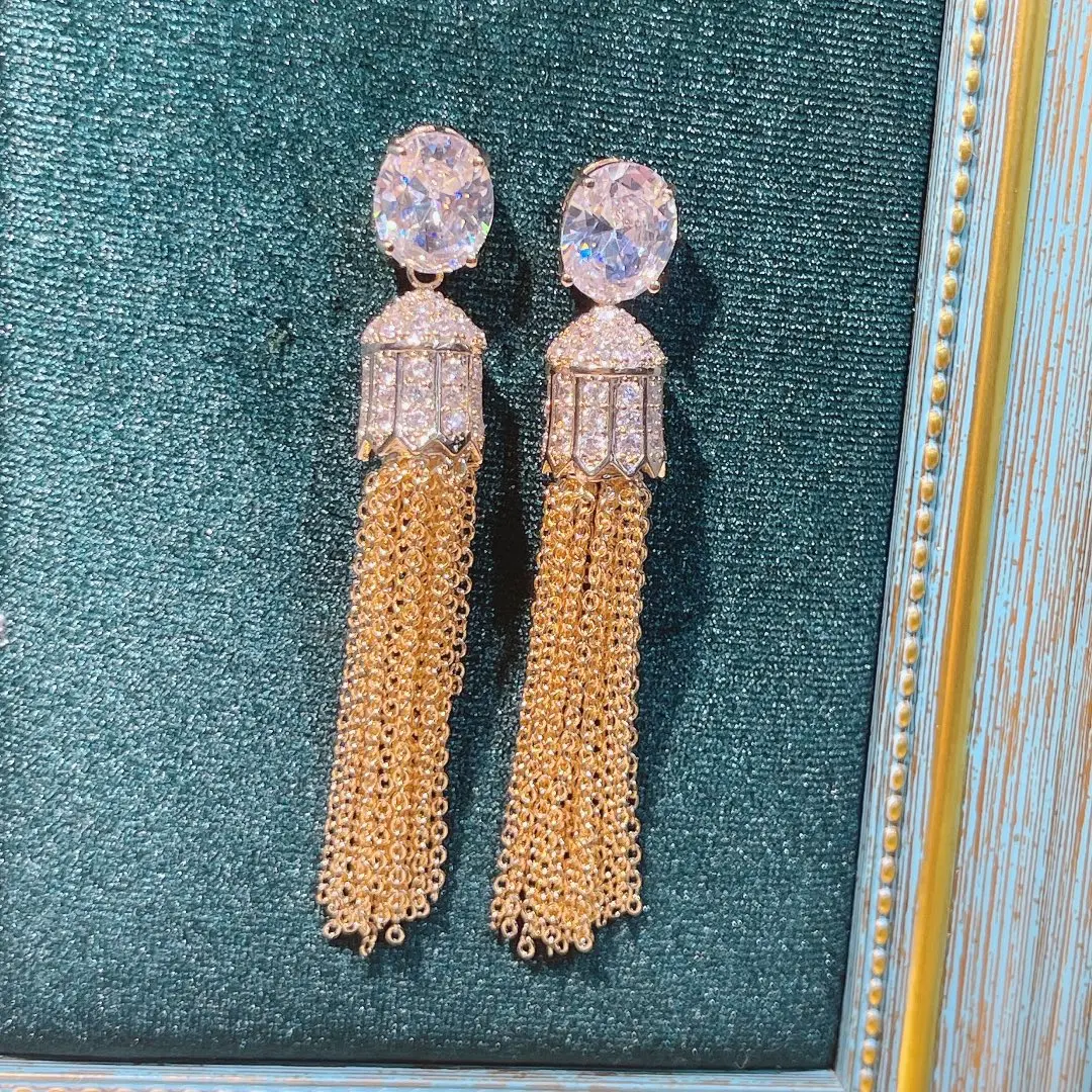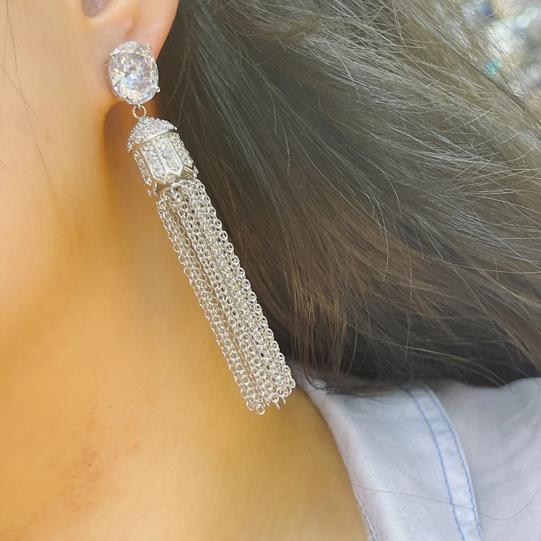 HIBRIDE انخفاض شرابات طويلة كاملة زركون المشاركة حفل زفاف ملهى ليلي انخفاض الأقراط النساء خلع الملابس والمجوهرات E-1013