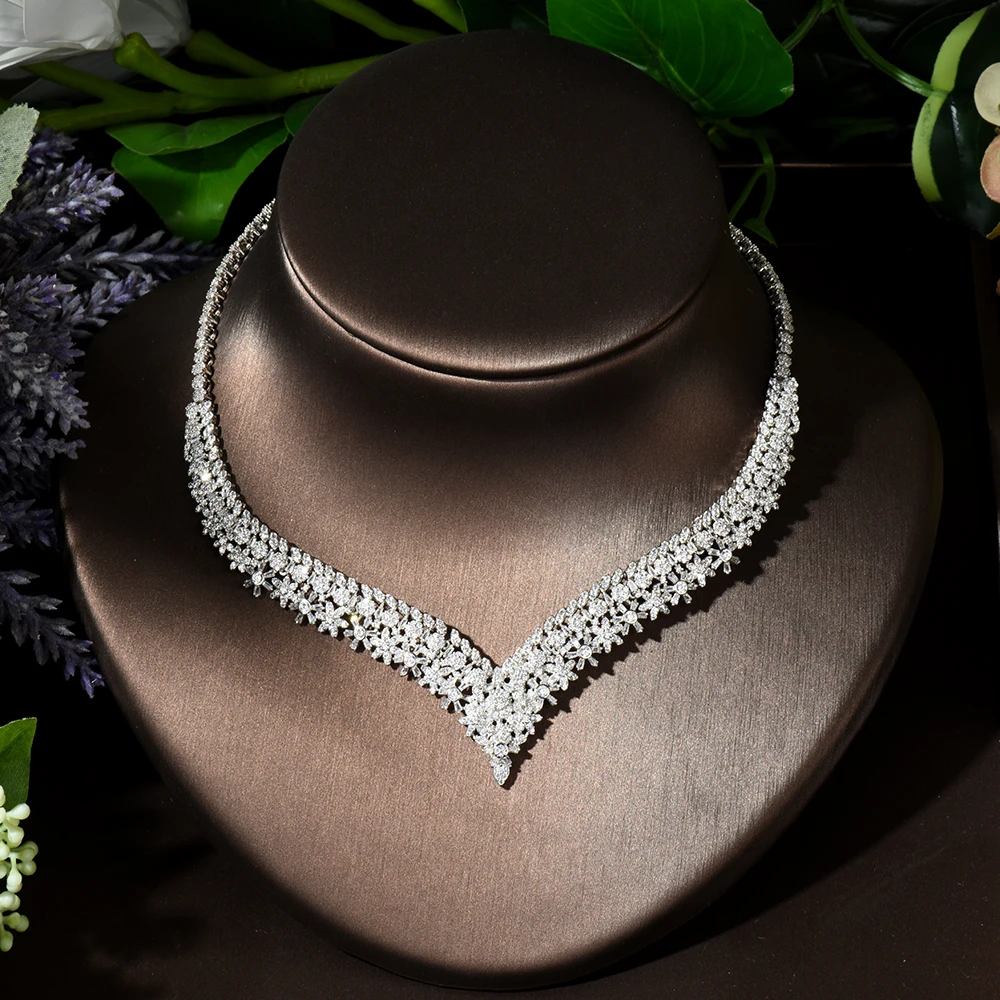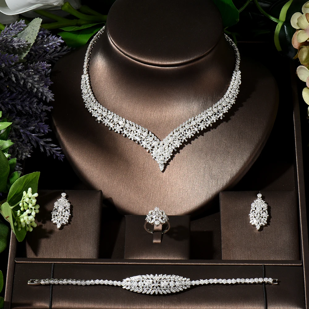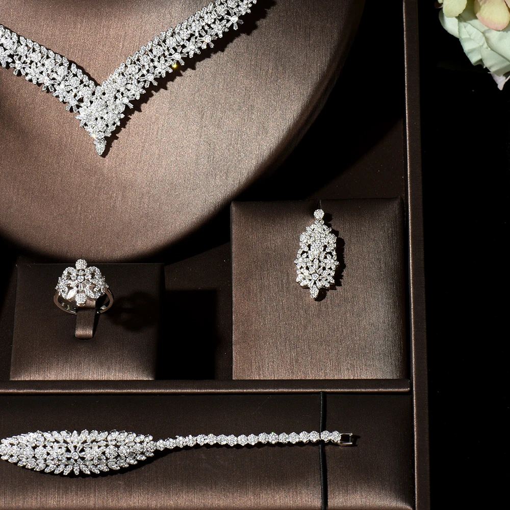 HIBRIDE بريليانت مكعب عقد من حجر الياقوت أقراط الطوق وسوار مجموعة الزفاف الزفاف النساء مجوهرات فستان اكسسوارات N-149