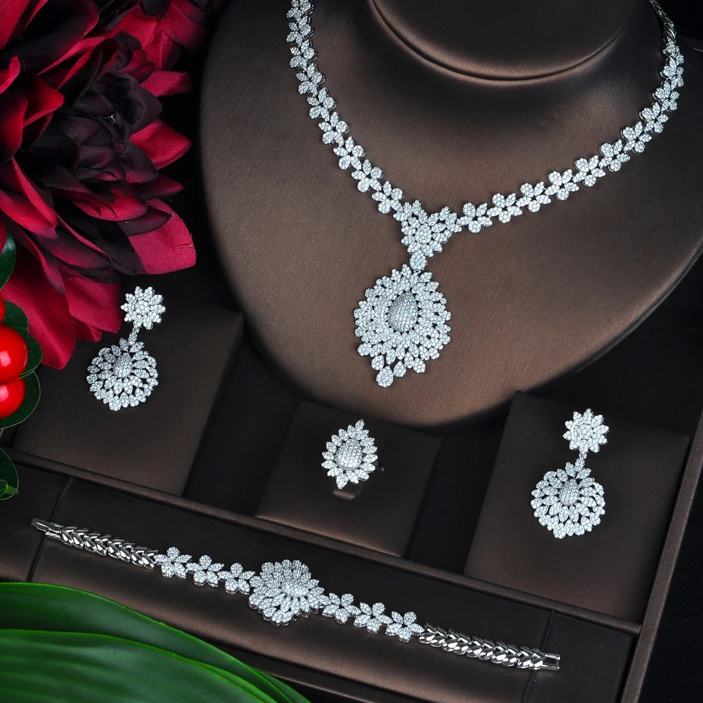 HIBRIDE جديد كامل زركون الكبير Pendientes طقم مجوهرات للنساء الزفاف اكسسوارات الزفاف بارور بيجو فام N-706