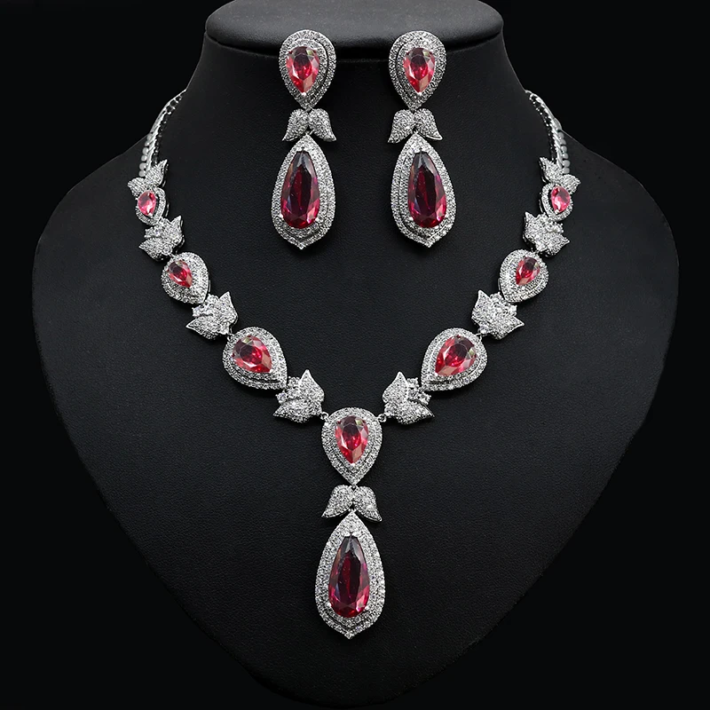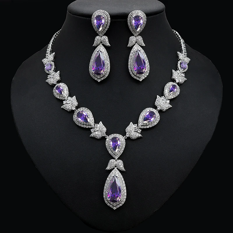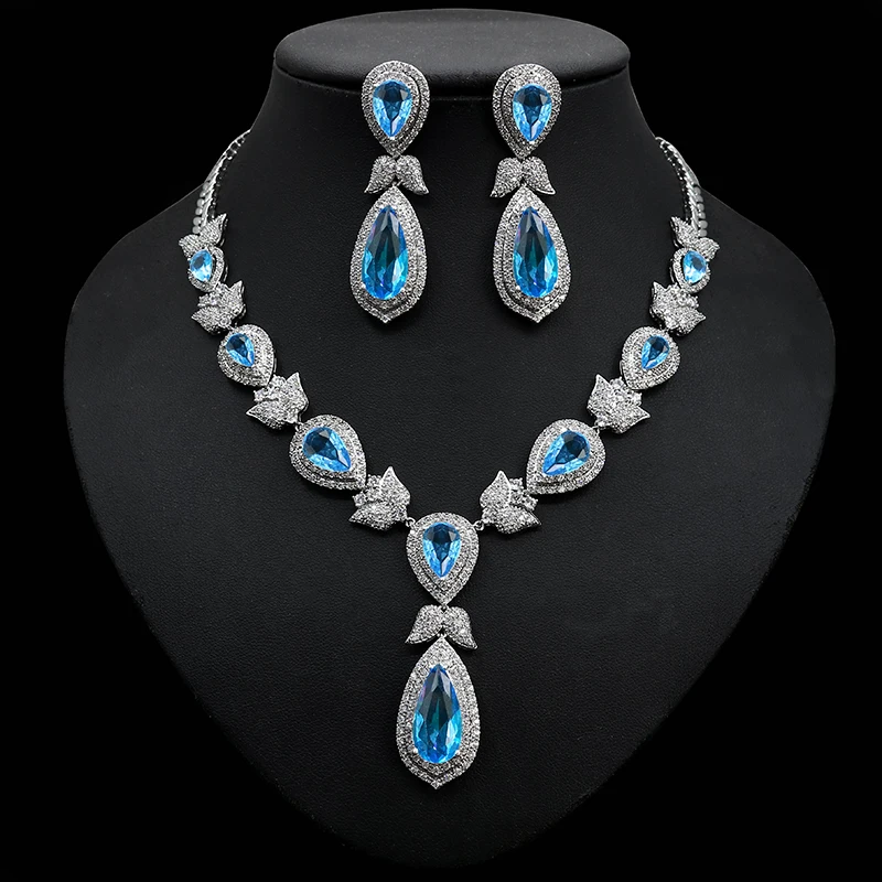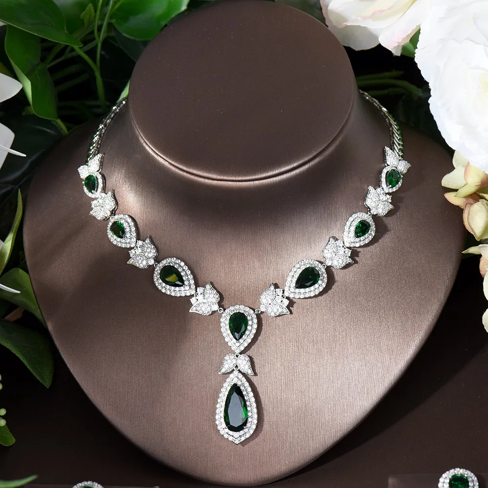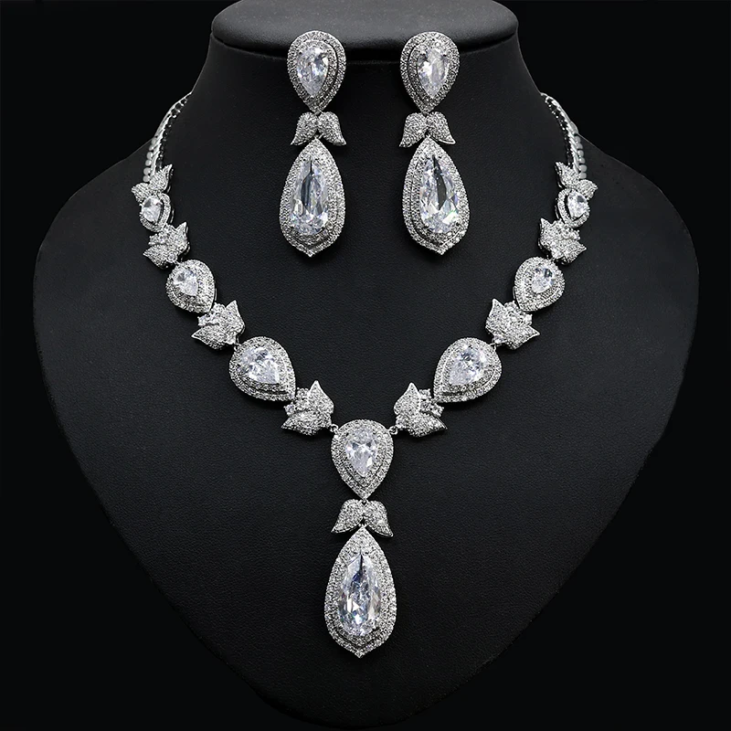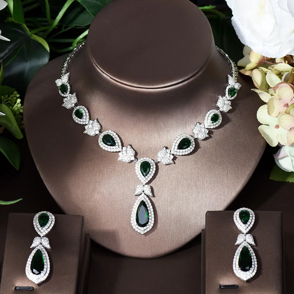 HIBRIDE جميلة ورقة زهرة شكل كريستال زركون المرأة مجموعات مجوهرات الزفاف فستان عروس اكسسوارات بيجو فام N-447