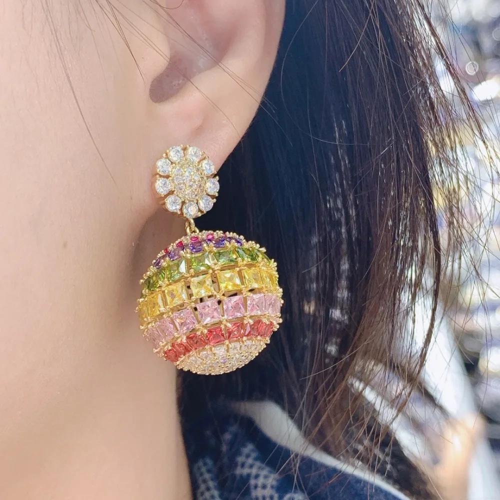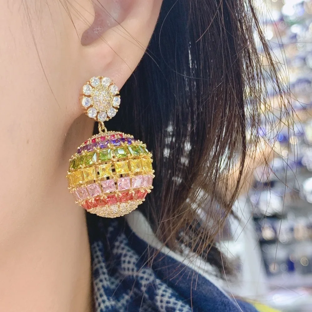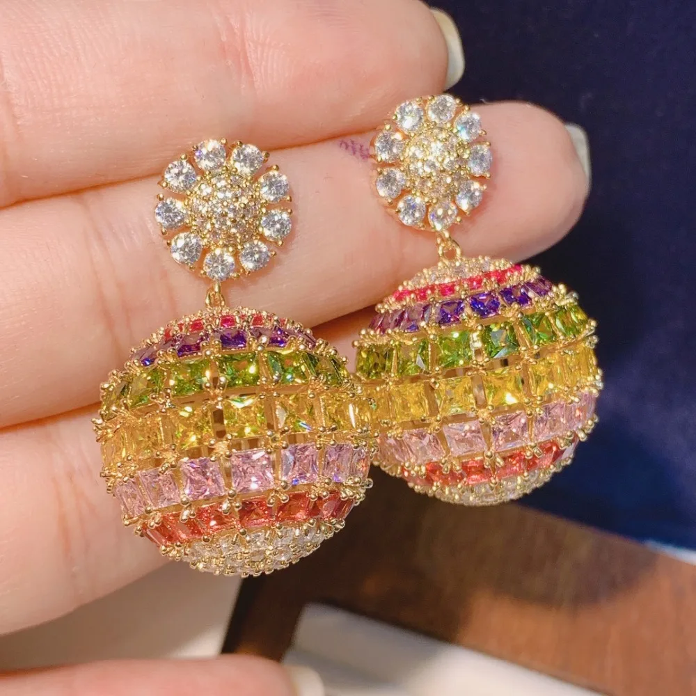 HIBRIDE سحر الفاخرة كرات قطرة القرط المرأة الكامل ميركو تشيكوسلوفاكيا معبد مكعب الزركون الزفاف الأزياء والمجوهرات بيجو فام E-13