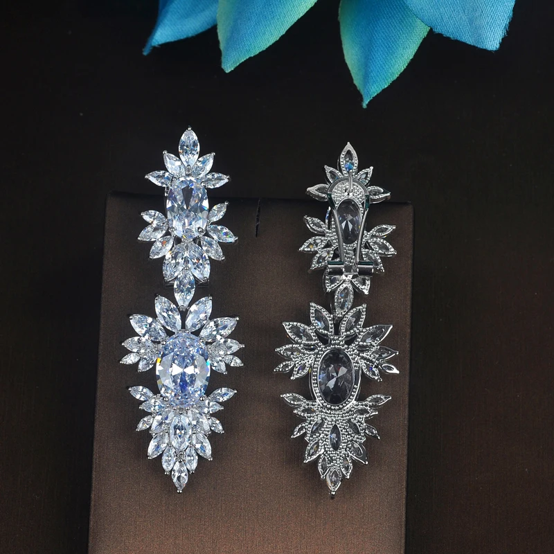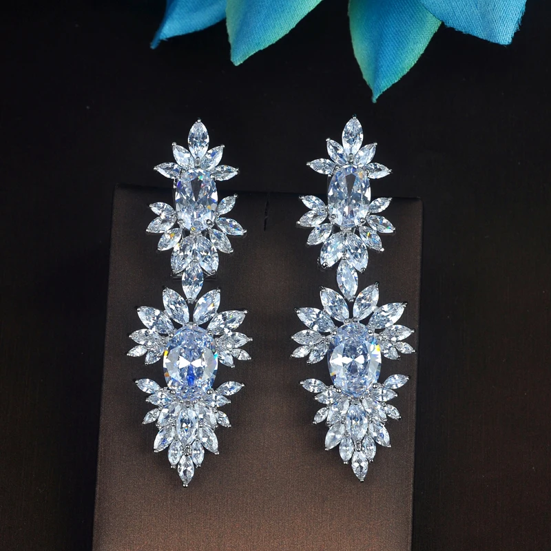 HIBRIDE سحر بريليانت كريستال مكعب الزركون طويلة انخفاض الأقراط للنساء مجوهرات Brinco Pendientes موهير مودا E-737