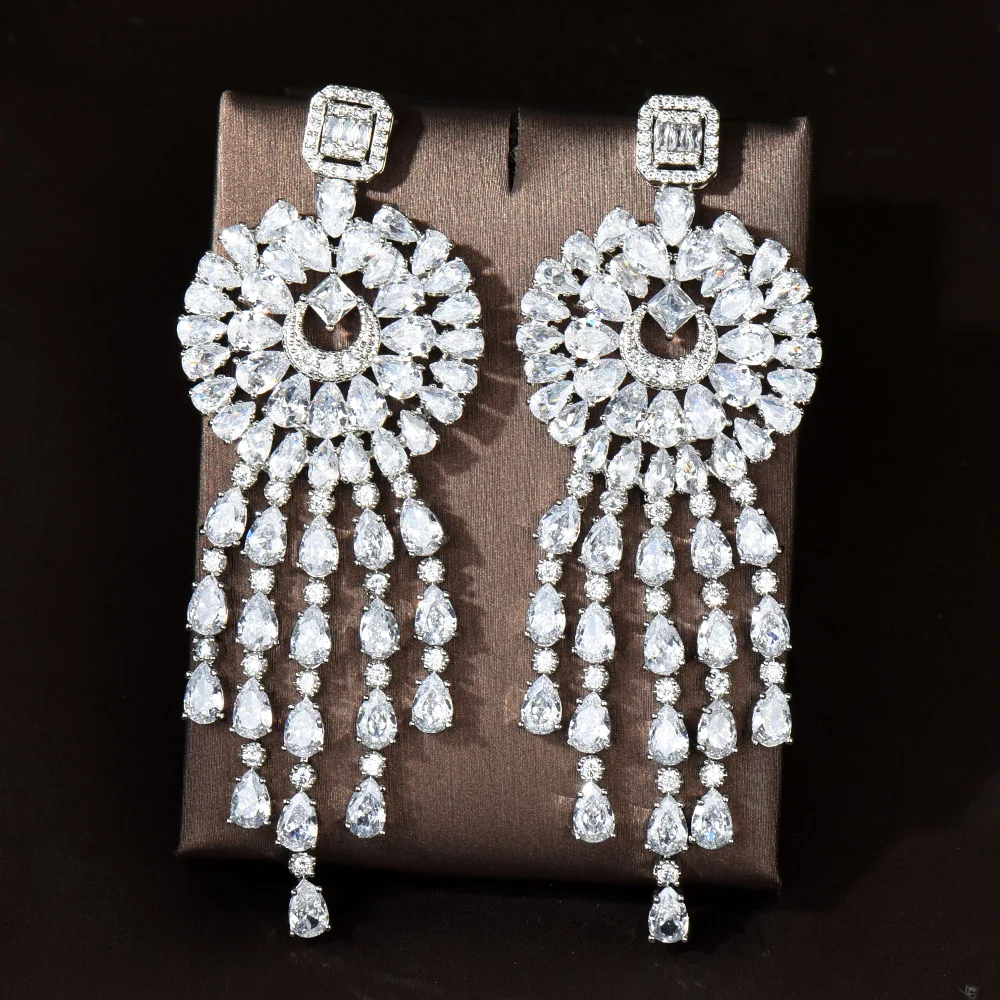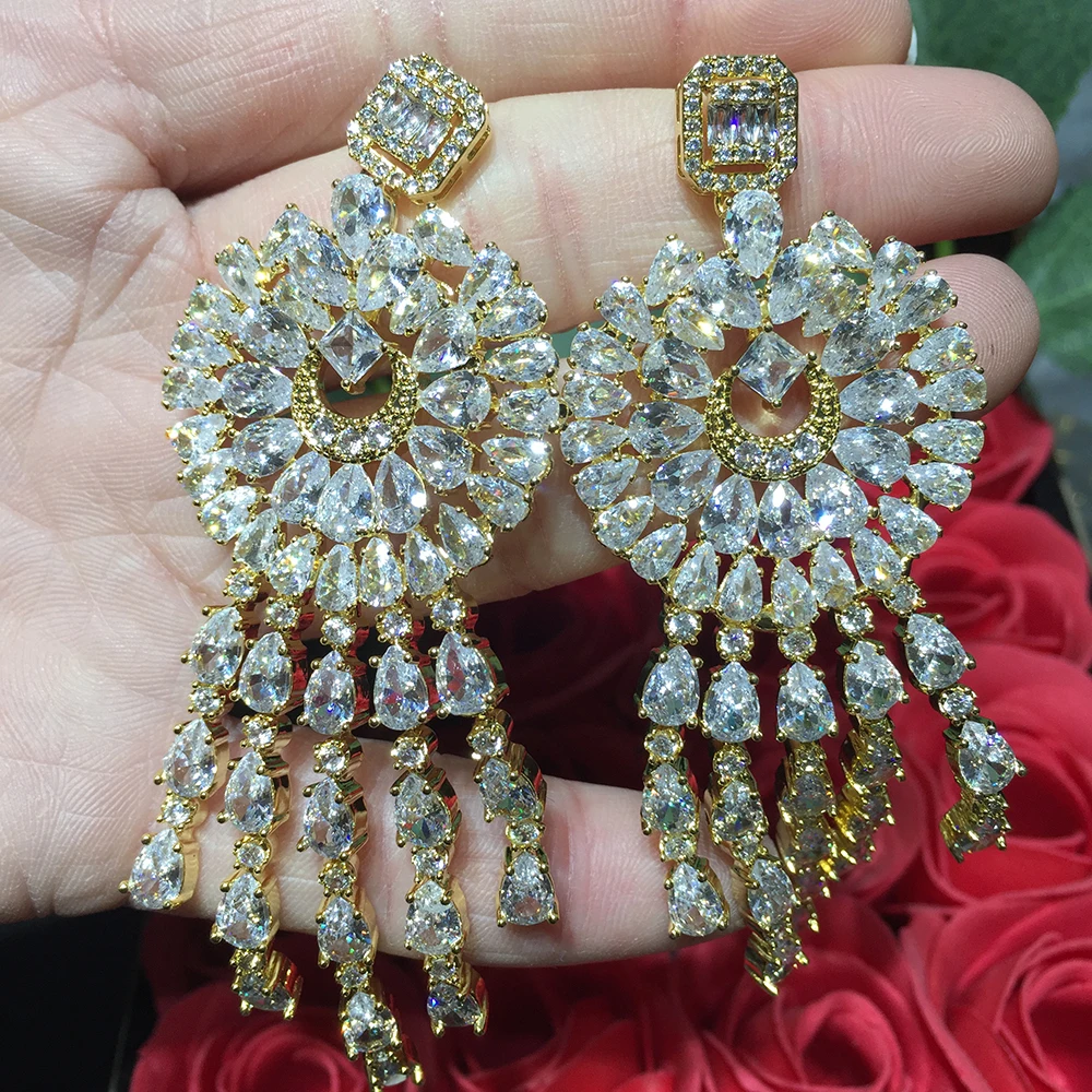 HIBRIDE كامل زركون معبد الذهب الأبيض اللون جولة استرخى إسقاط أقراط للنساء مجوهرات الزفاف بيجو E-1056
