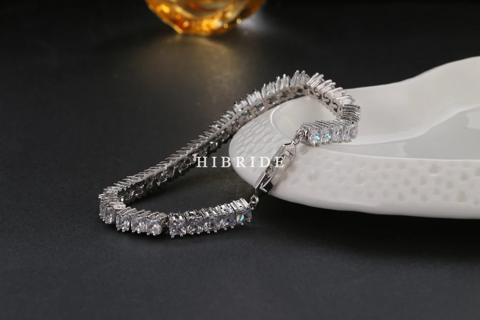 HIBRIDE مجوهرات العلامة التجارية جديد تصميم AAA مكعب الزركون الزفاف أساور و الذهب الأبيض اللون أساور الفاخرة النساء والمجوهرات ، B-20