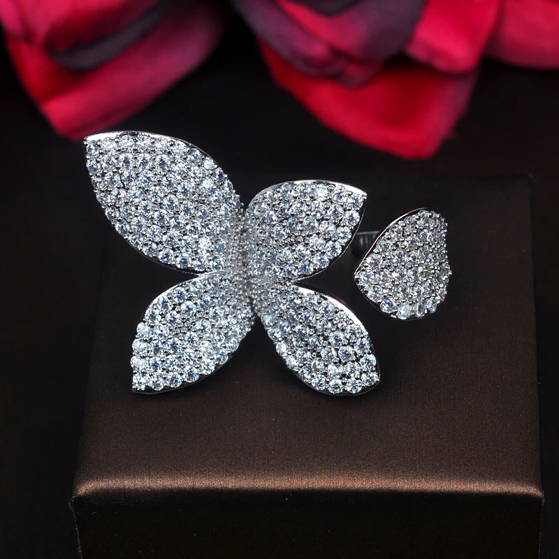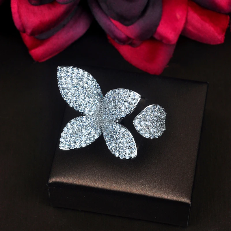 HIBRIDE Elagant زهرة شكل AAA زركون خواتم الخطبة للنساء الفاخرة مجوهرات الزفاف حزب الهدايا الجملة R-211