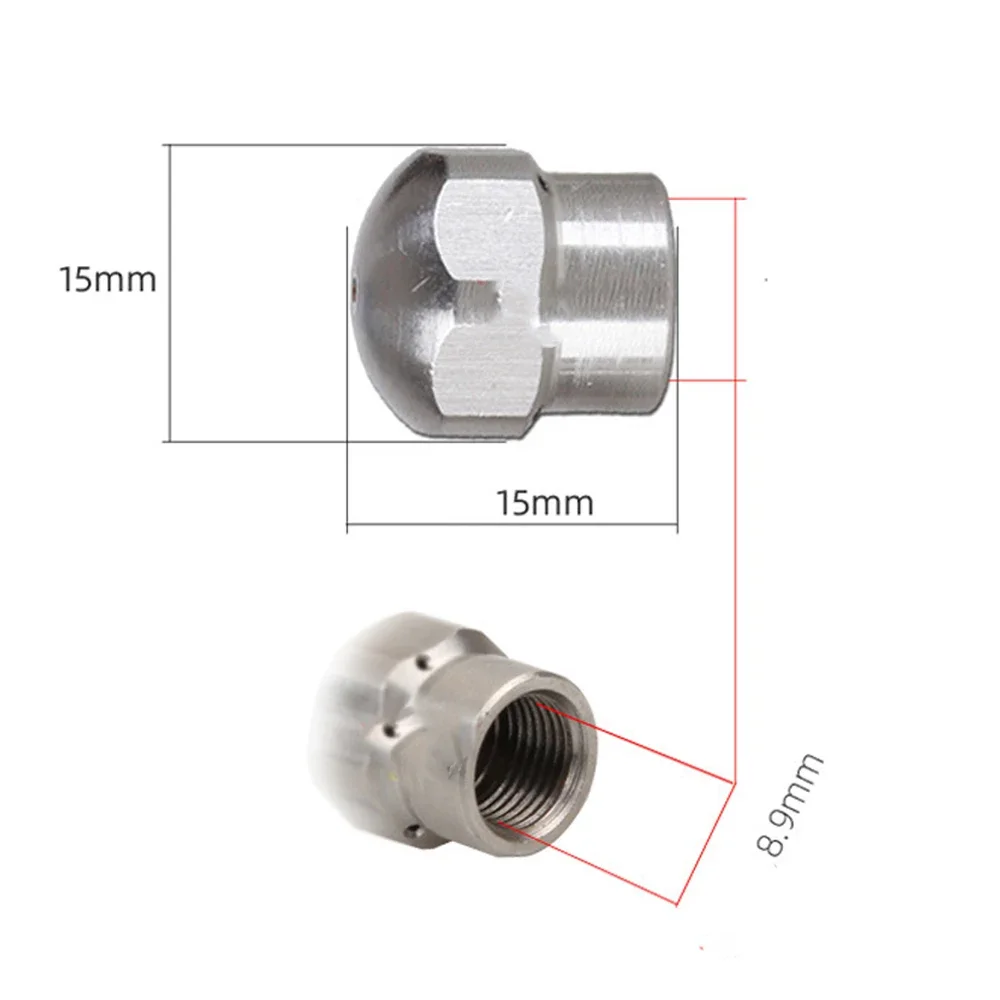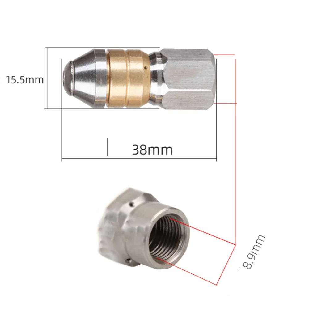 【Applications】This sewer jetting nozzle can be applied widely in cleaning applications, such as general sewer, drain cleaning, industrial pipe and tube cleaning to provide good cleaning results and efficient work efficiency.