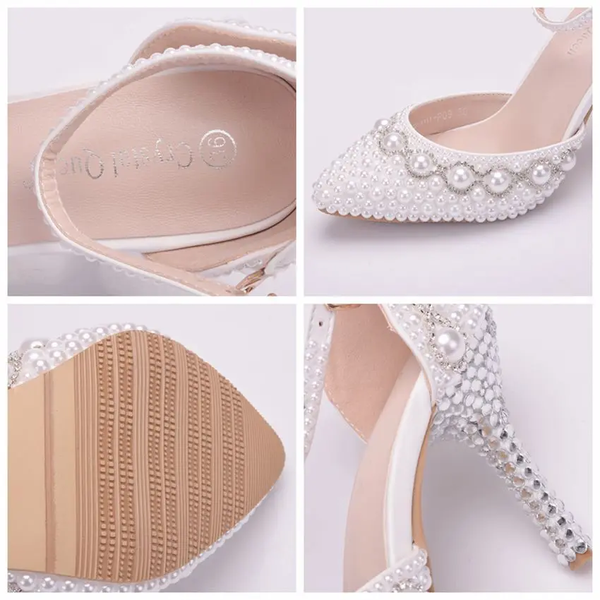 HOT البيع أحذية النساء الموضة مضخات مشبك اللؤلؤ أشار تو الكعوب رقيقة 9.5 سنتيمتر مثير حفلة موسيقية الزفاف عالية الكعب أحذية النساء