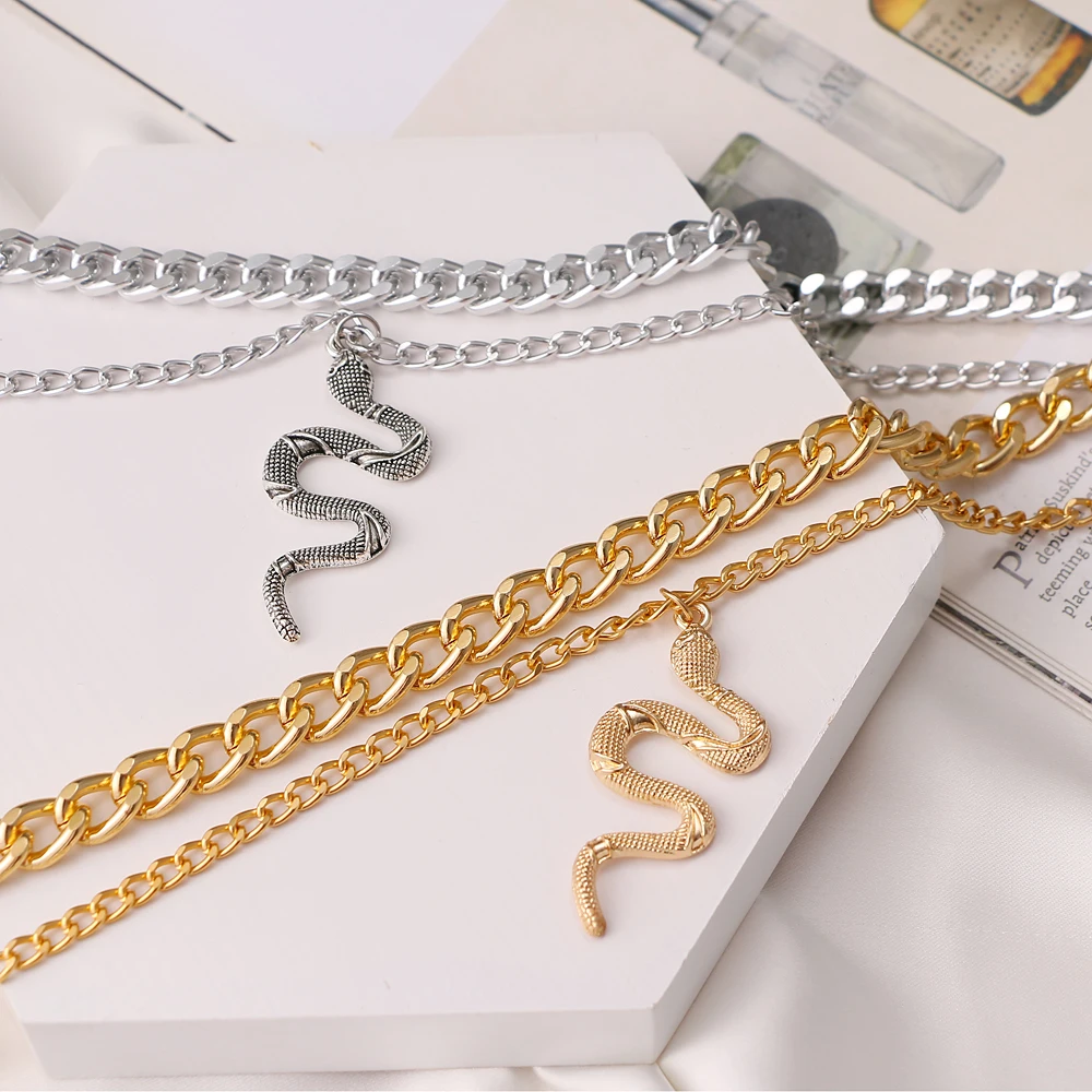IPARAM خمر سلسلة معدنية ثعبان قلادة قلادة الشرير الحيوان الأفعى تويست سلسلة طوق قلادة قلادة المرأة مجوهرات الأزياء