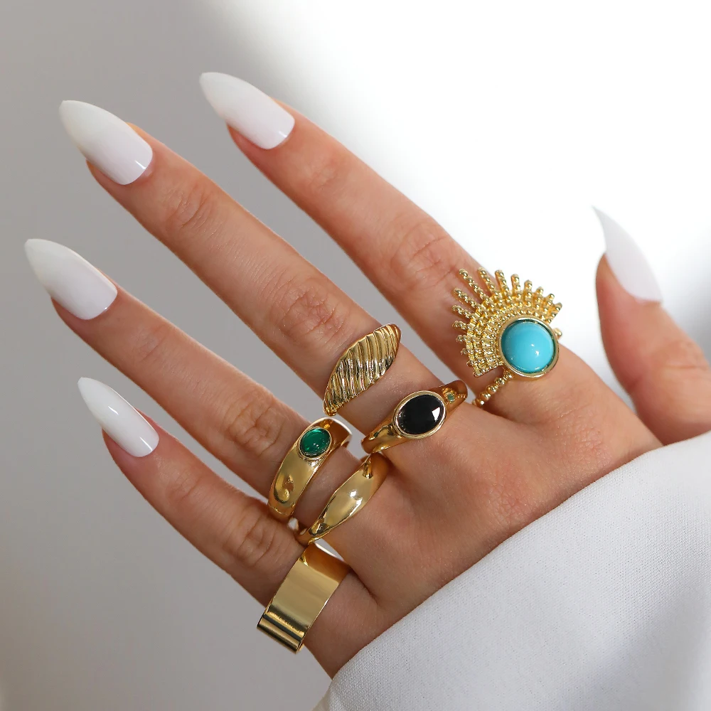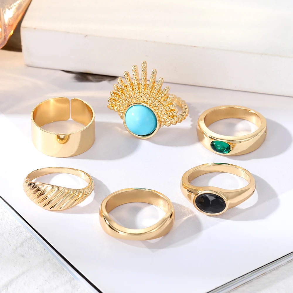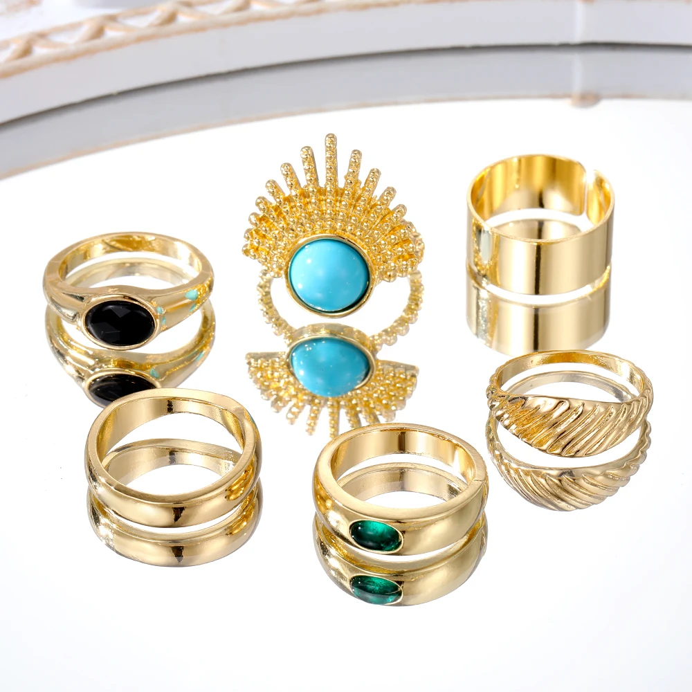 IPARAM مبالغ فيها خواتم للنساء الرجال تقليد الفيروز الأخضر الأسود حجر هندسي الذهب اللون البنصر مجوهرات الحفلات