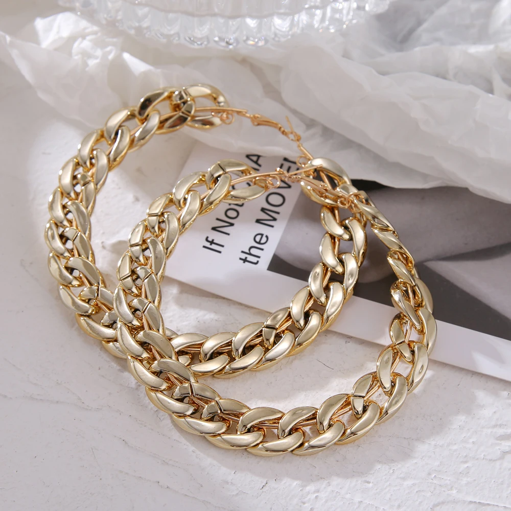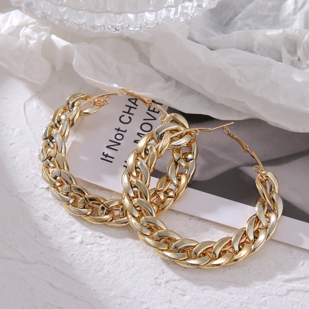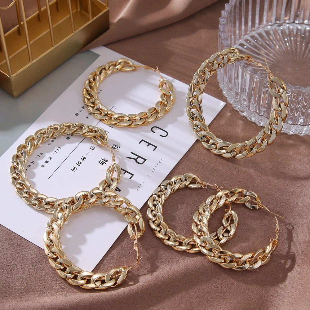 IPARAM-أقراط على شكل دائرة معدنية مجوفة ، مجوهرات نسائية ، سلسلة معدنية ثقيلة ، 2020