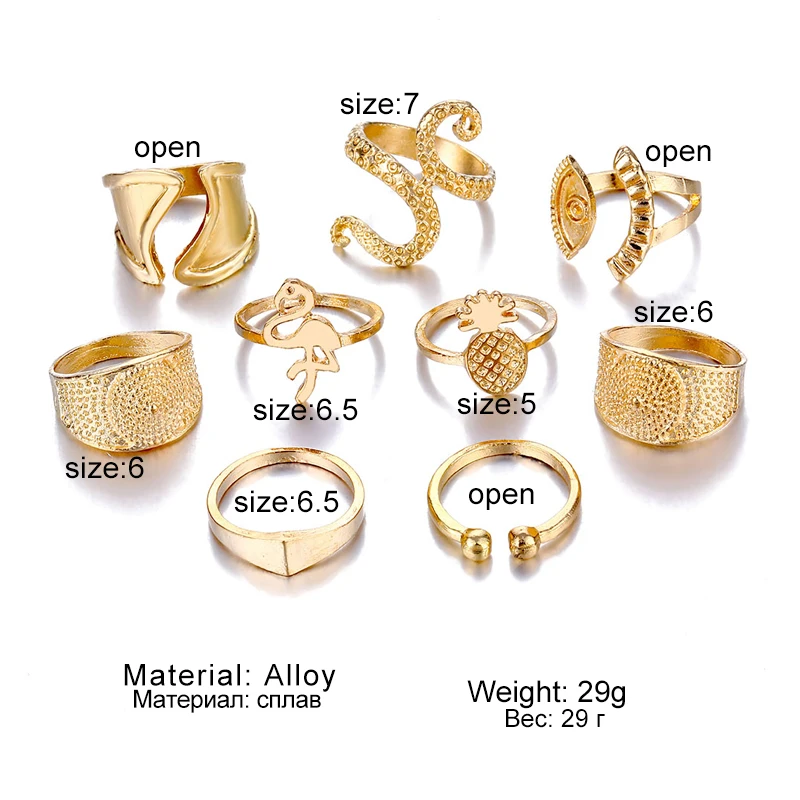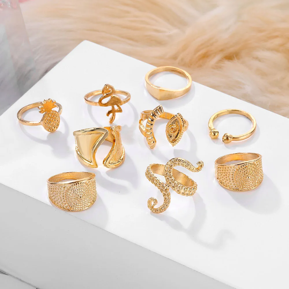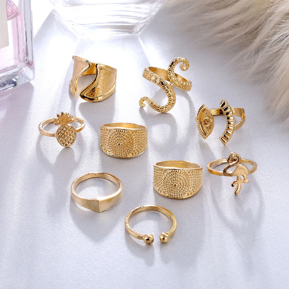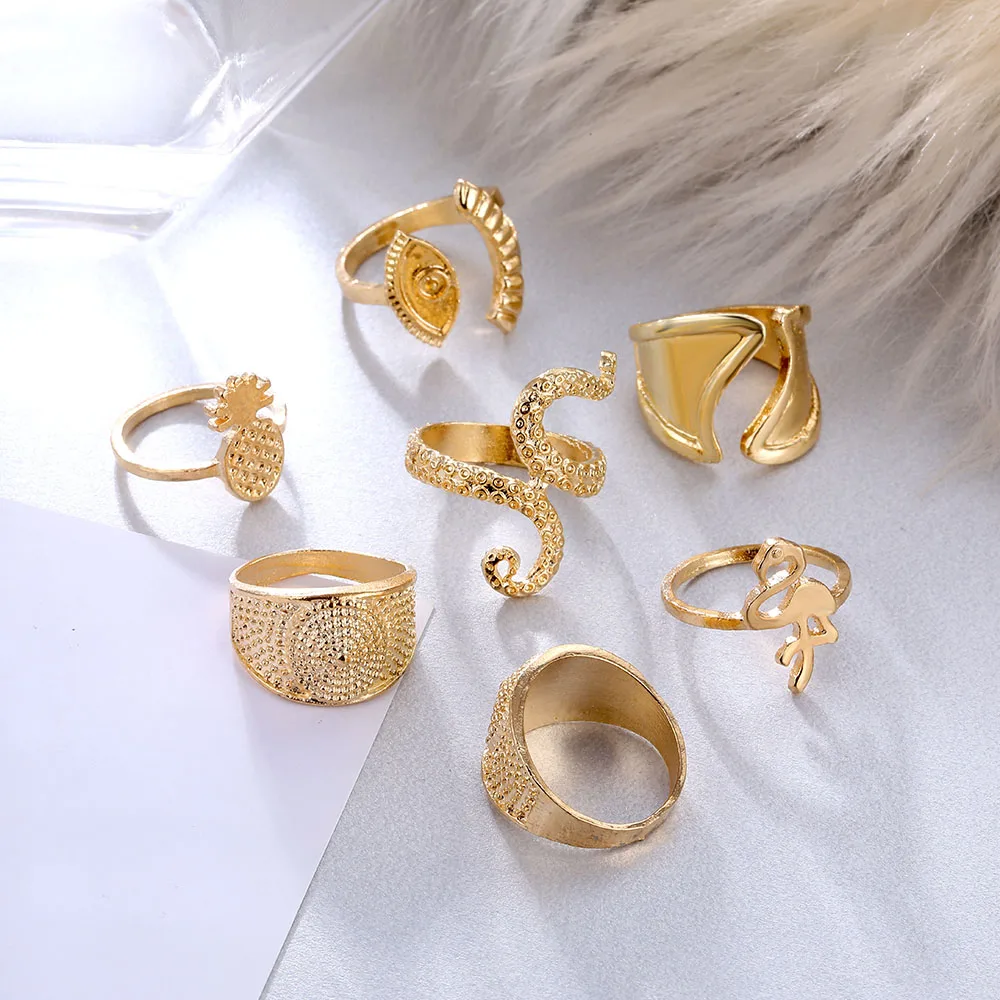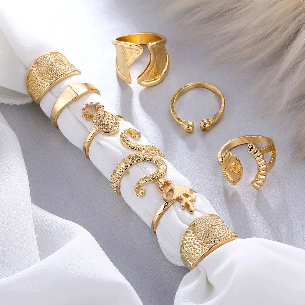 IPARAM البوهيمي الذهب اللون هندسية البنصر مجموعة للنساء الرجعية سبيكة الطيور الأناناس خاتم مشترك هدية
