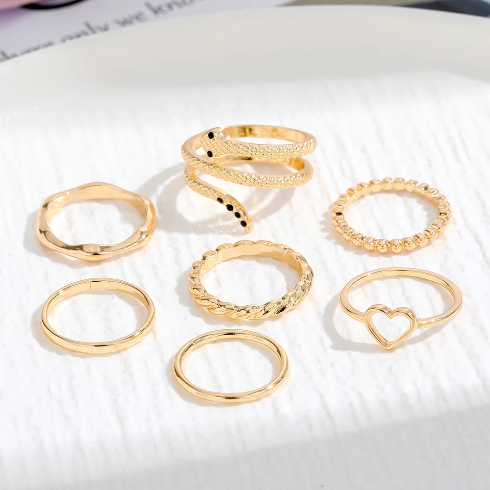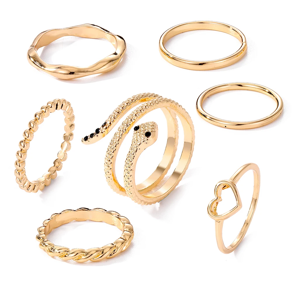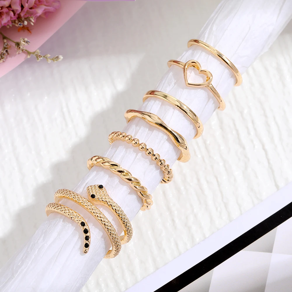 IPARAM الذهب اللون الفضة اللون المعادن خواتم مجموعة للنساء الأفعى القلب هندسية الشرير البنصر حزب العصرية موضة مجوهرات