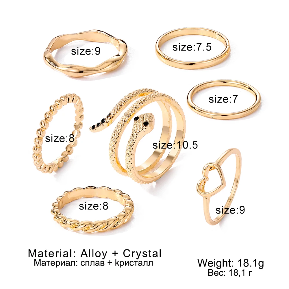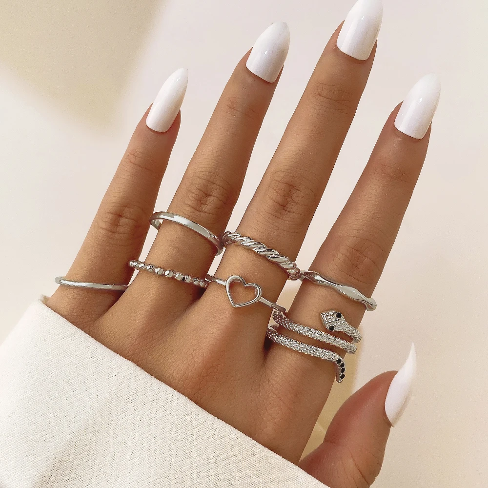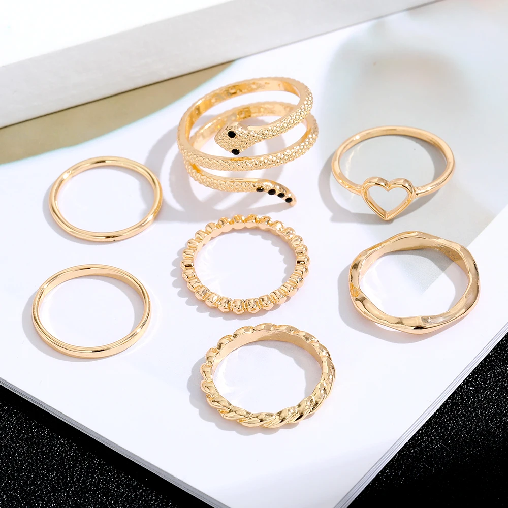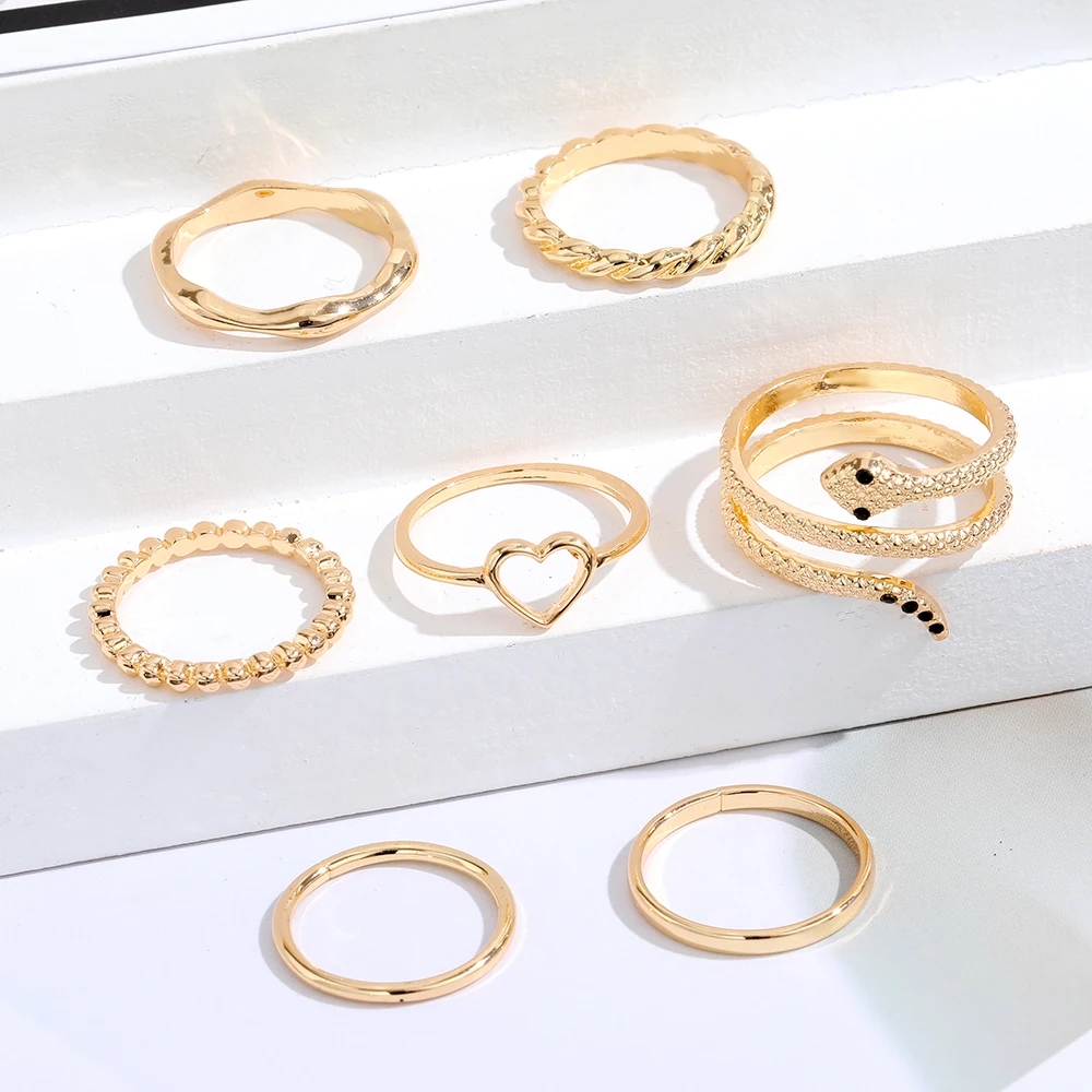IPARAM الذهب اللون الفضة اللون المعادن خواتم مجموعة للنساء الأفعى القلب هندسية الشرير البنصر حزب العصرية موضة مجوهرات