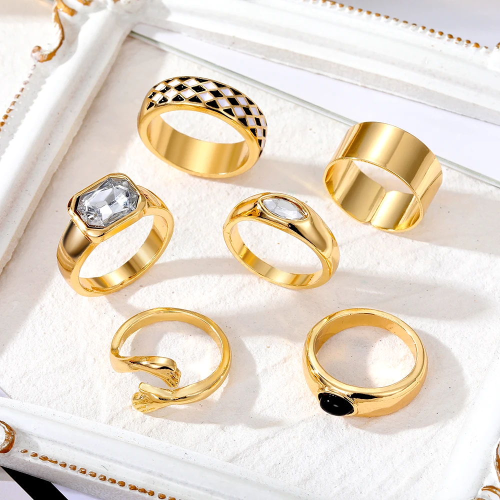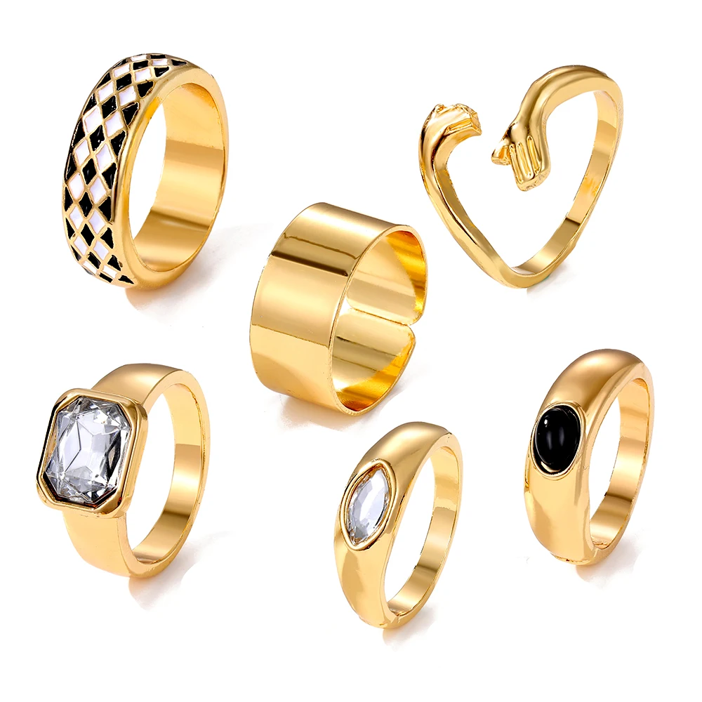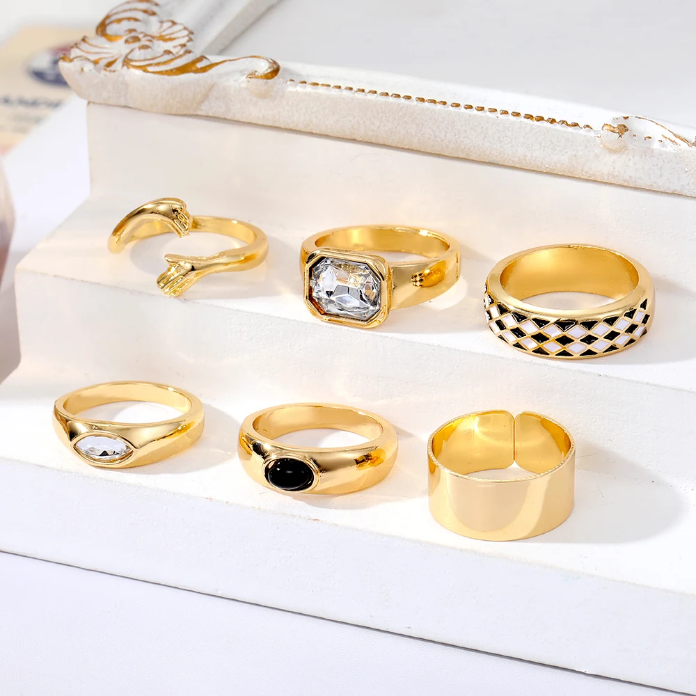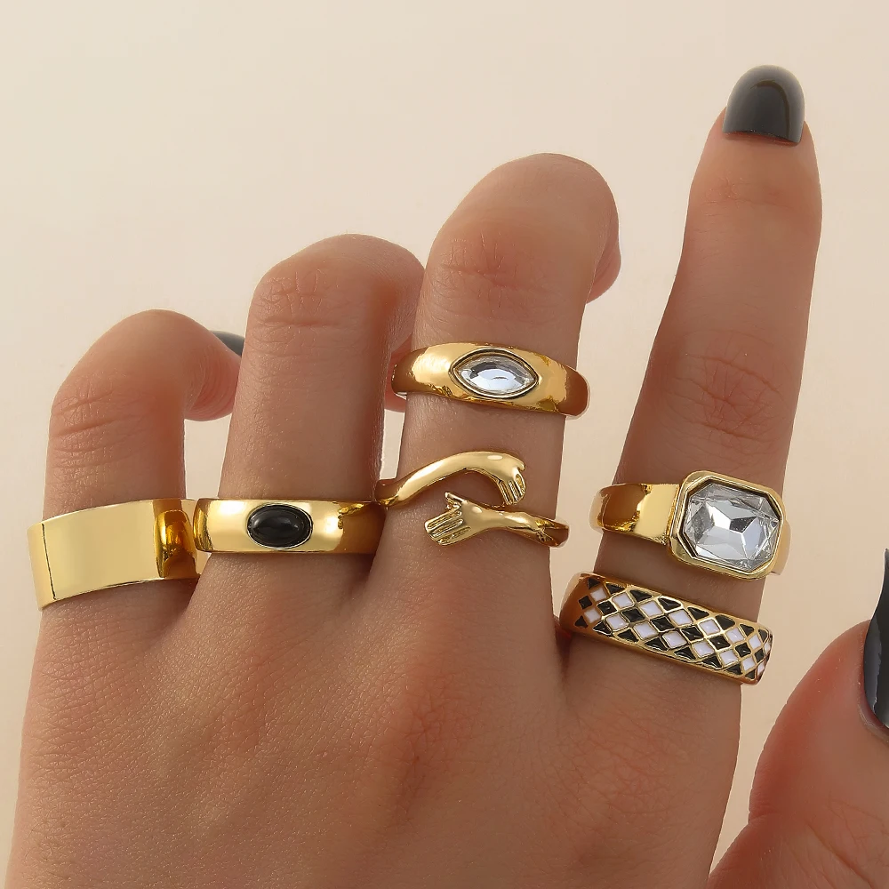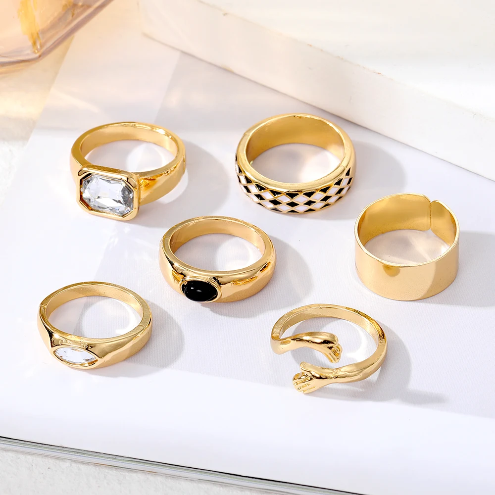 IPARAM الشرير الذهب اللون المعادن خواتم مجموعة للنساء الرجال اليد عناق عناق أبيض وأسود شعرية كريستال الدائري حزب مجوهرات مقلدة