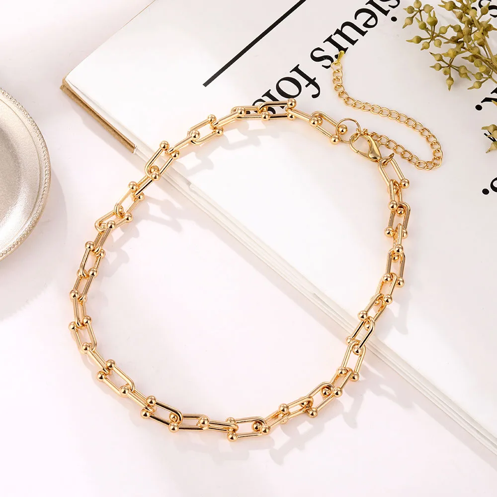 IPARAM الشرير هندسية سلسلة المختنق قلادة بيان للجنسين U شكل كبير سميكة سلسلة القلائد الرجال النساء زوجين مجوهرات