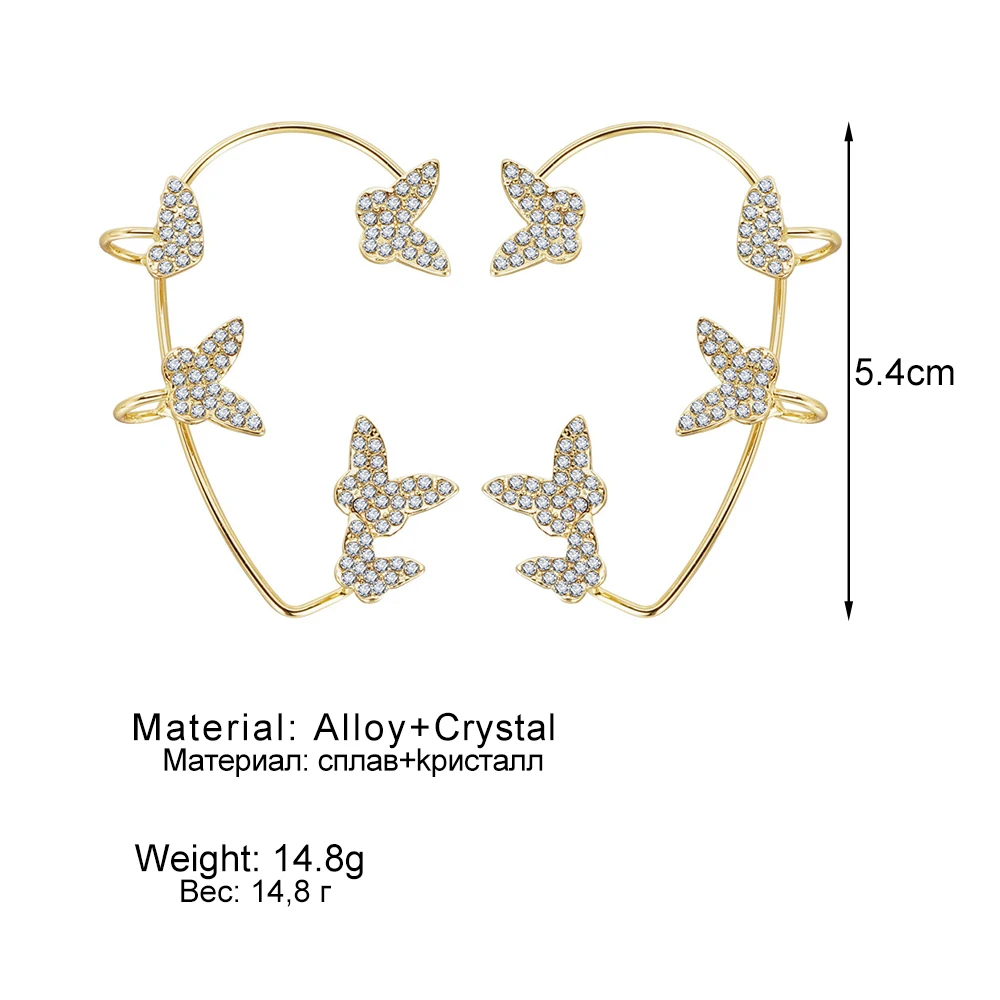 IPARAM العصرية المعادن فراشة كريستال الأذن كليب أقراط للنساء لا ثقب الزركون الأذن الكفة أقراط مشبكية مجوهرات الزفاف