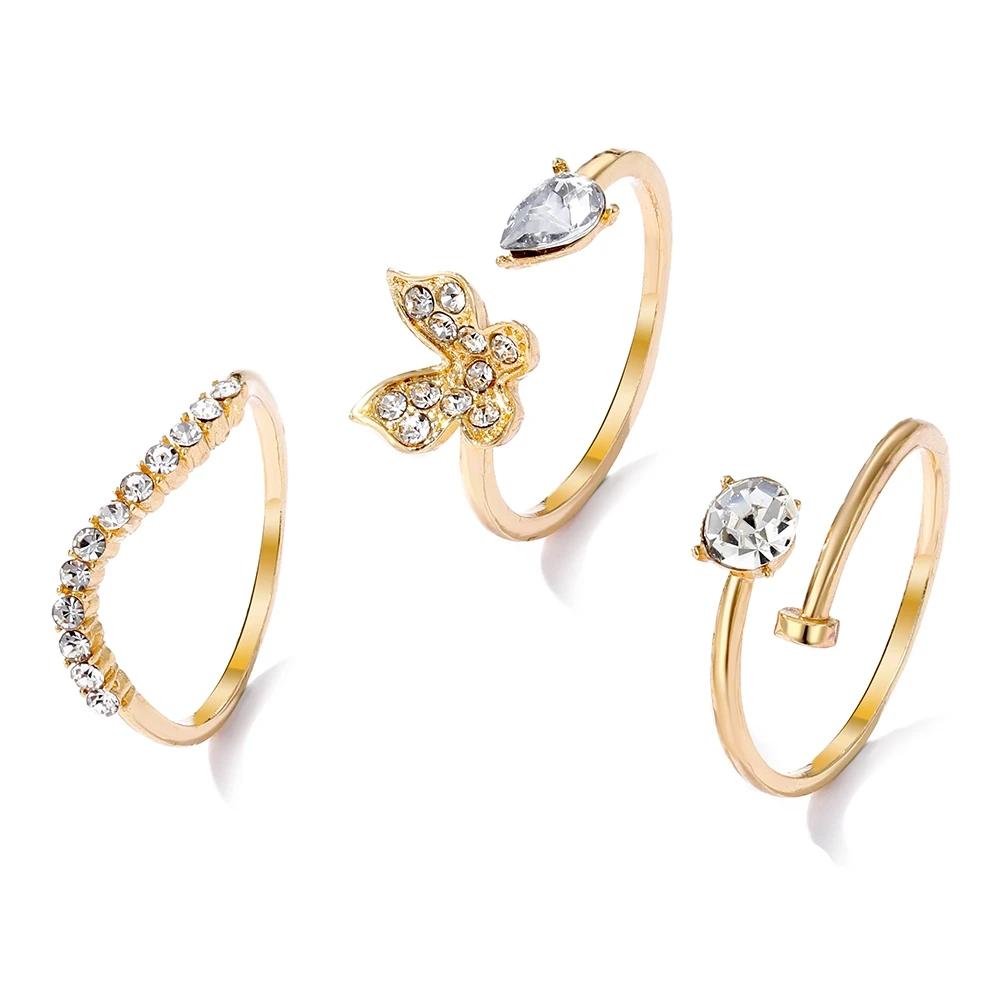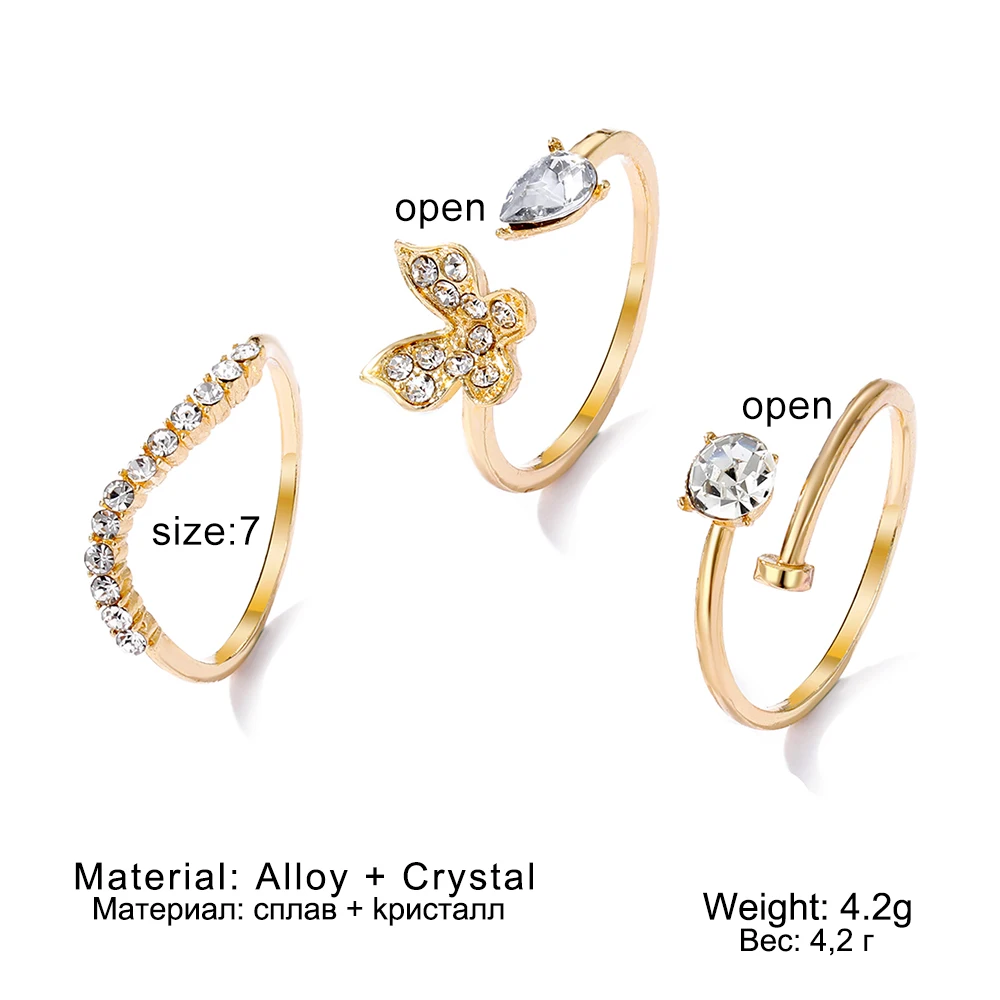 IPARAM بوهيميا كريستال لامعة خواتم للنساء فراشة الزركون للتعديل خاتم المرأة أنيقة موضة مجوهرات هدايا الزفاف