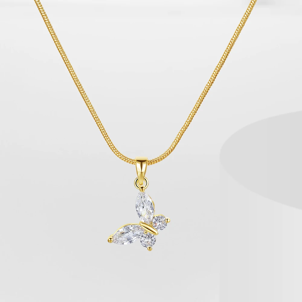 IPARAM جديد سبائك النحاس كريستال قلادة القلائد للنساء الزركون الزهور فراشة القلب الذهب قلادة ملونة مجوهرات الأزياء