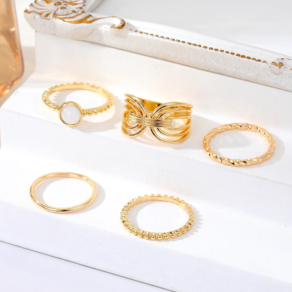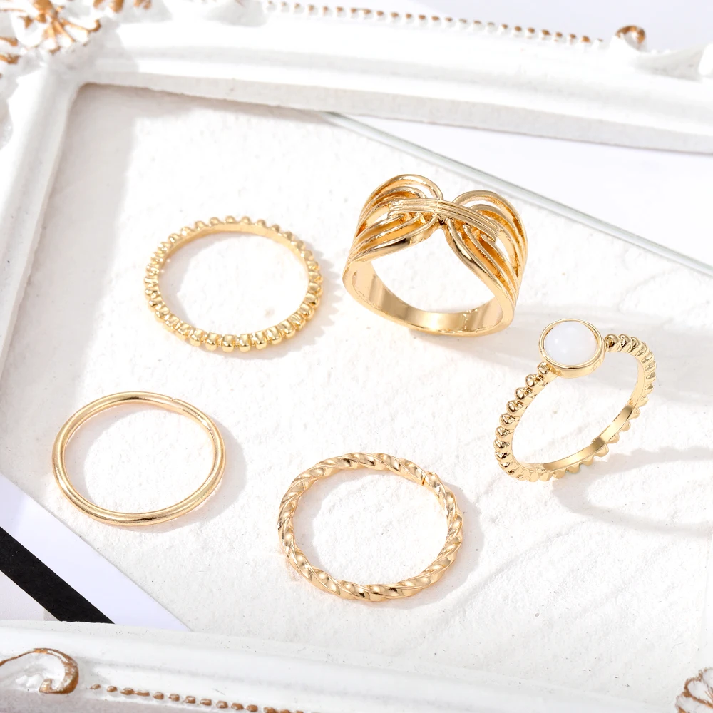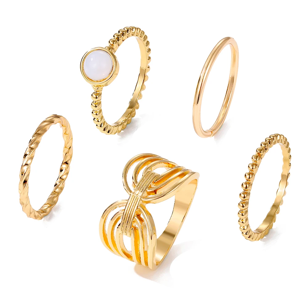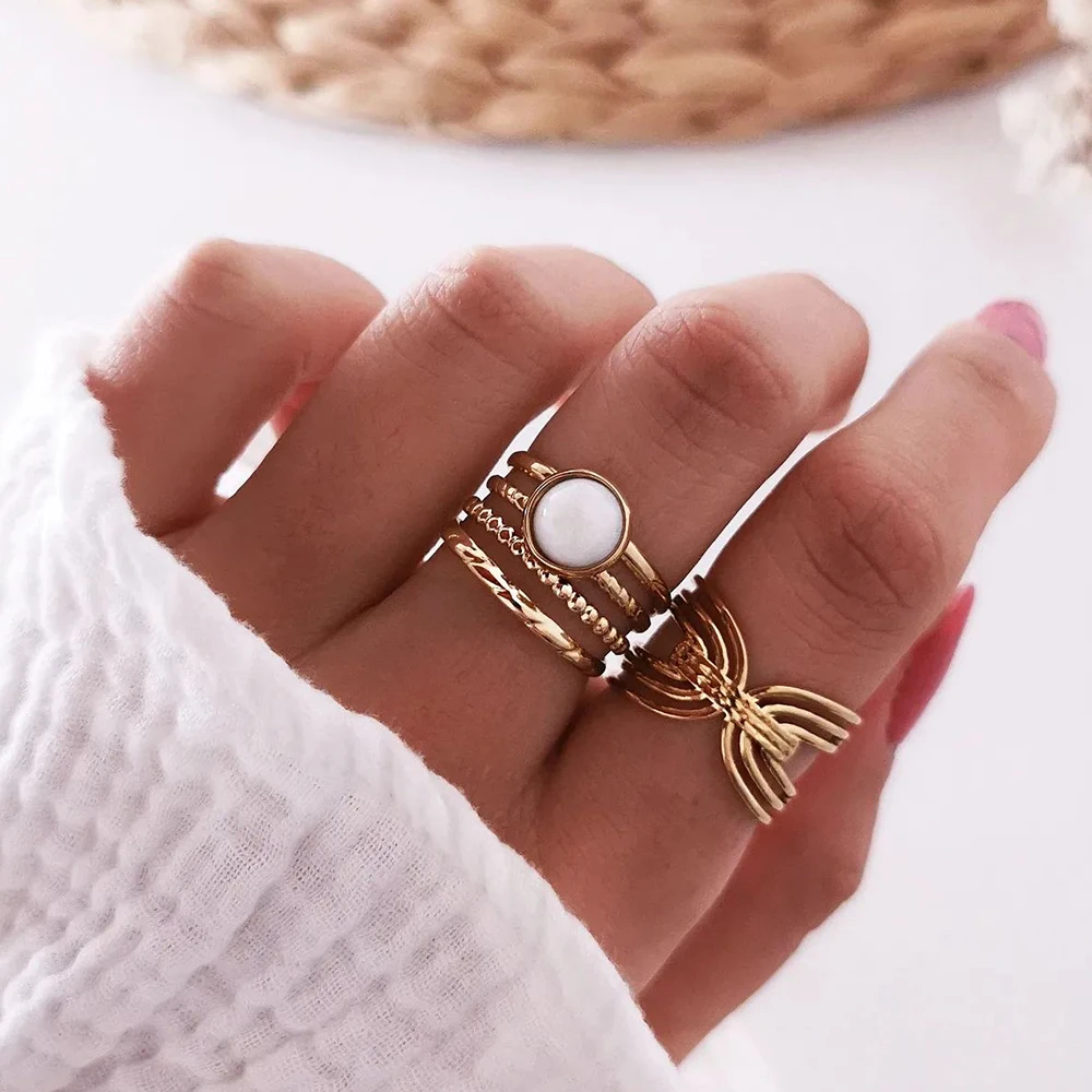IPARAM خمر المعادن خواتم للنساء الأبيض الخرز غير النظامية هندسية البنصر الذهب اللون الشرير خاتم موضة مجوهرات