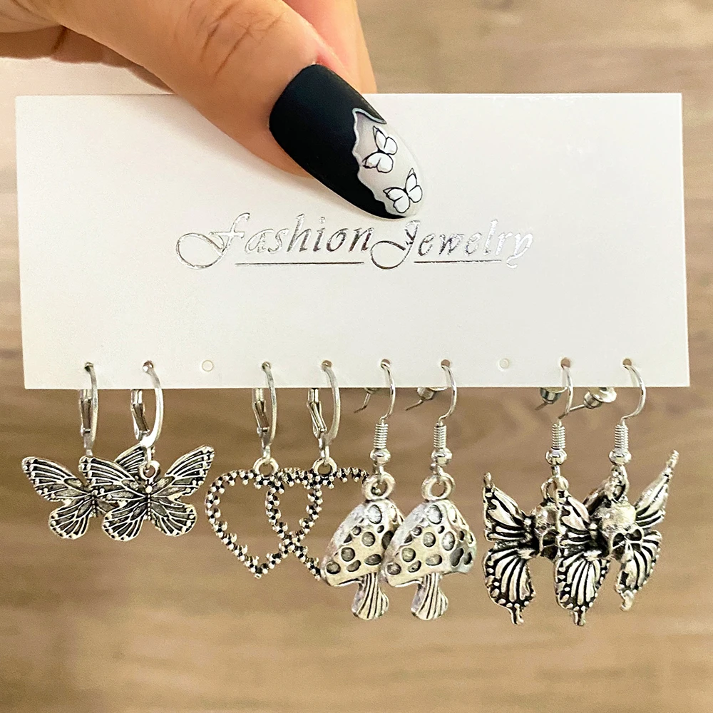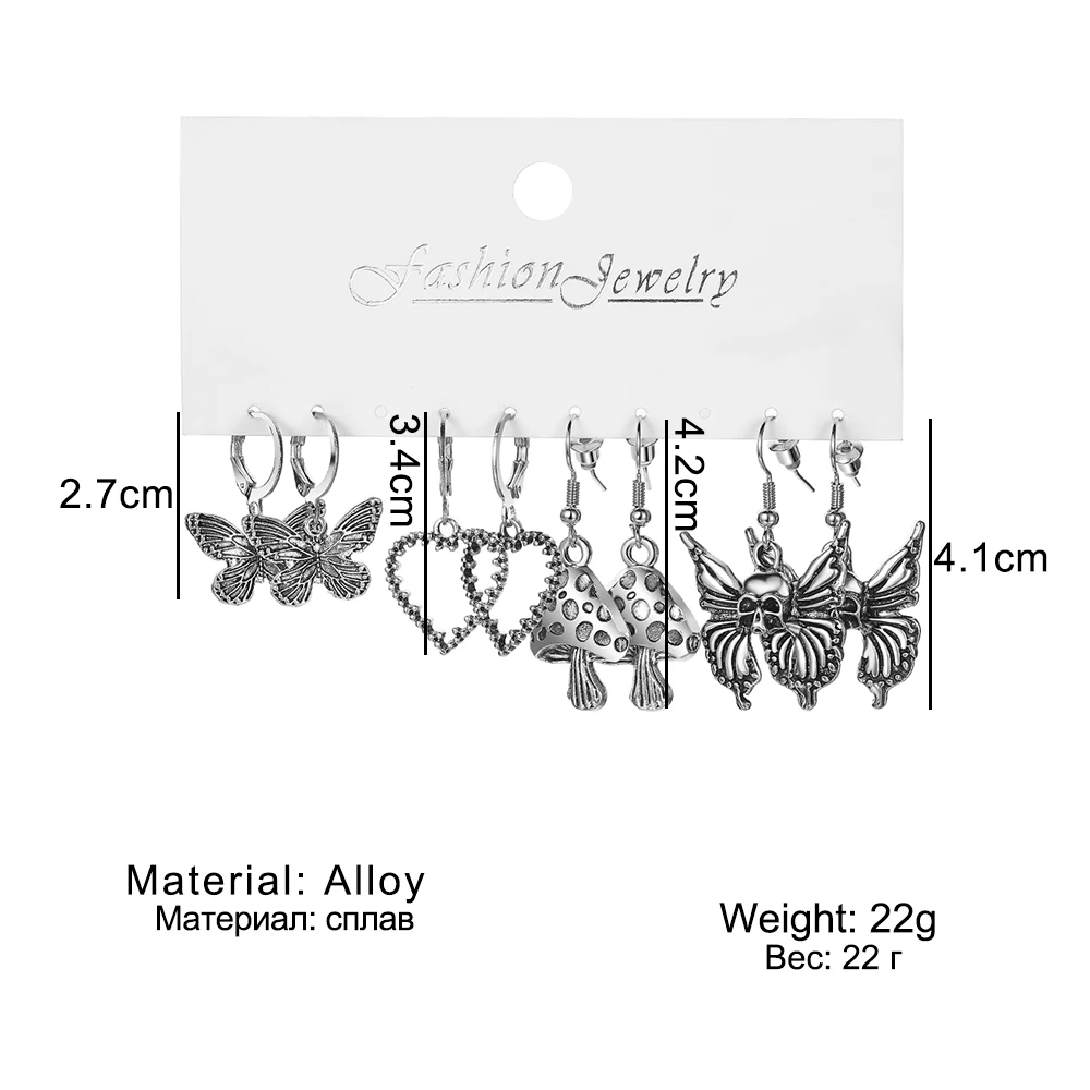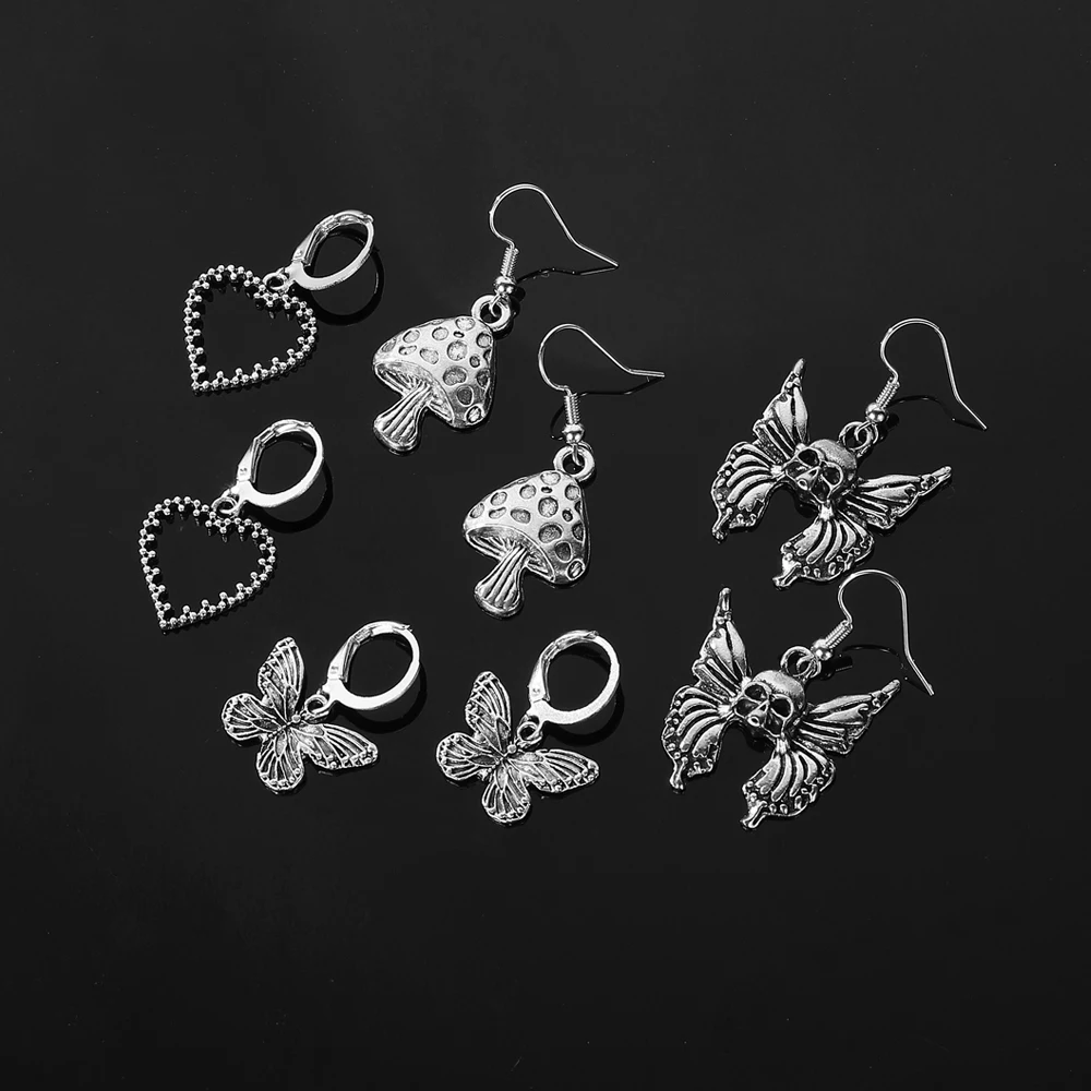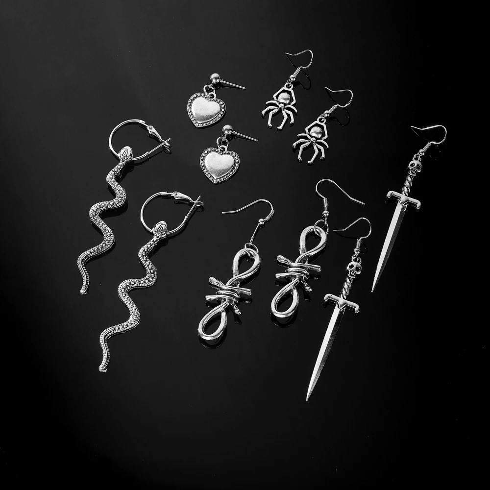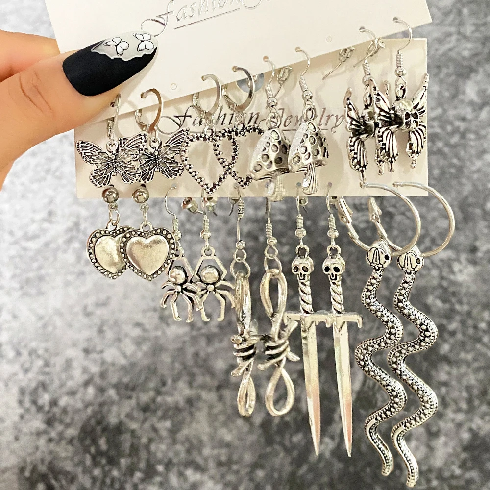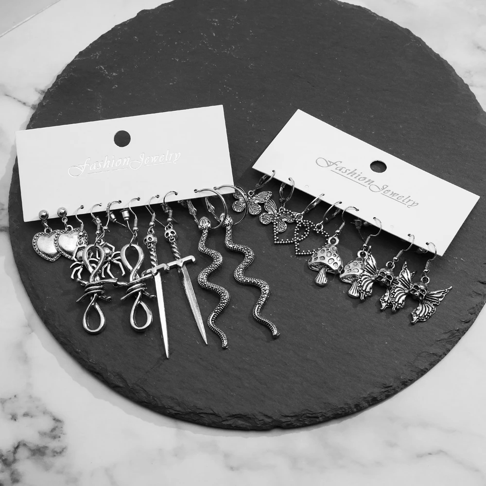 IPARAM خمر فضي اللون طقم من الحلقان للنساء طويل السيف الفطر فراشة الهيكل العظمي الأفعى القوطية شنق أقراط مجوهرات