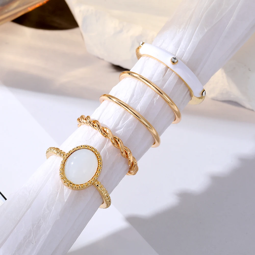 IPARAM خواتم أنيقة للنساء حجر أبيض مطعمة كريستال البنصر حزب الزفاف موضة مجوهرات هدايا