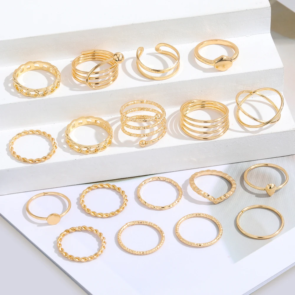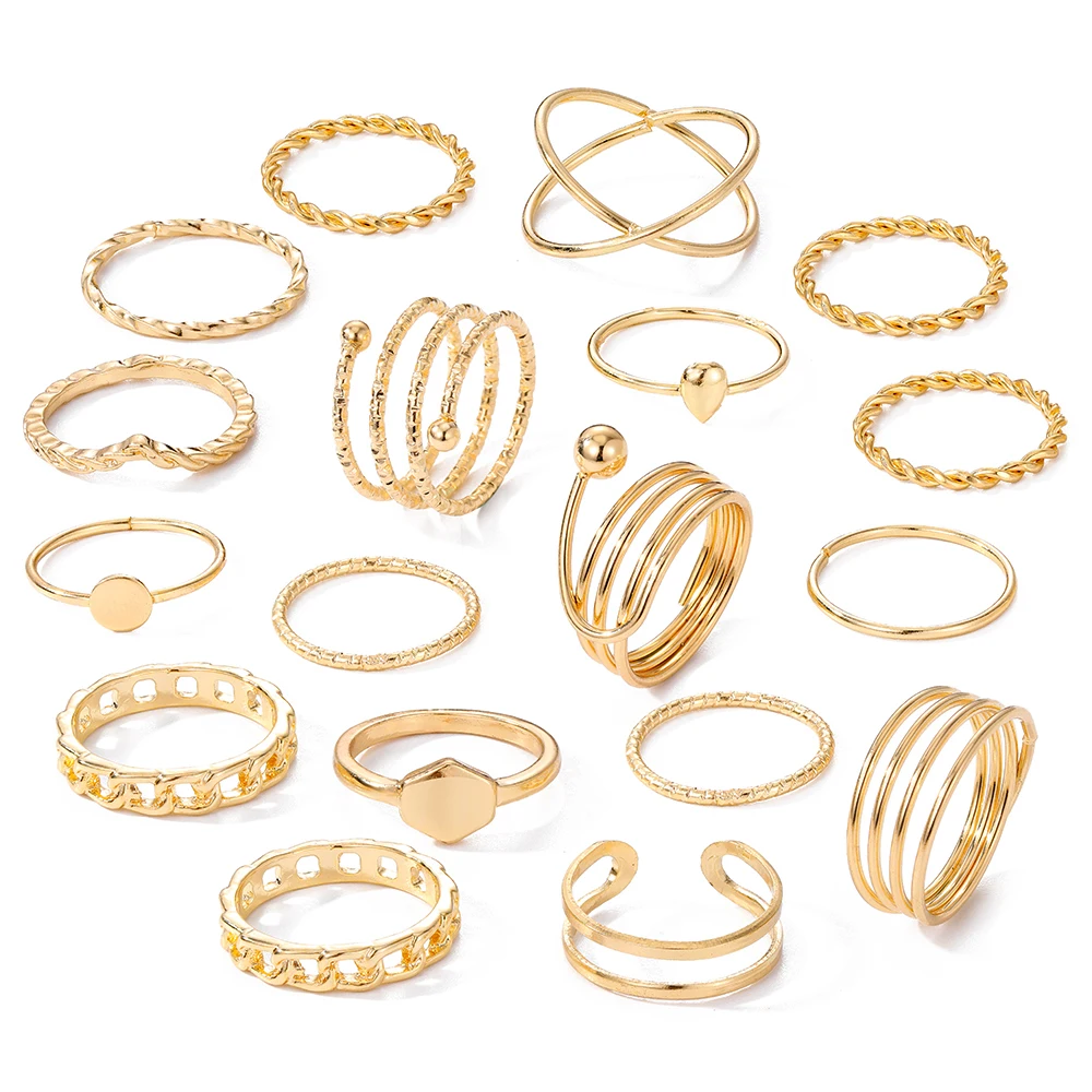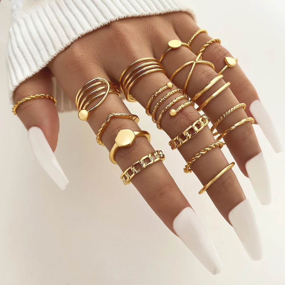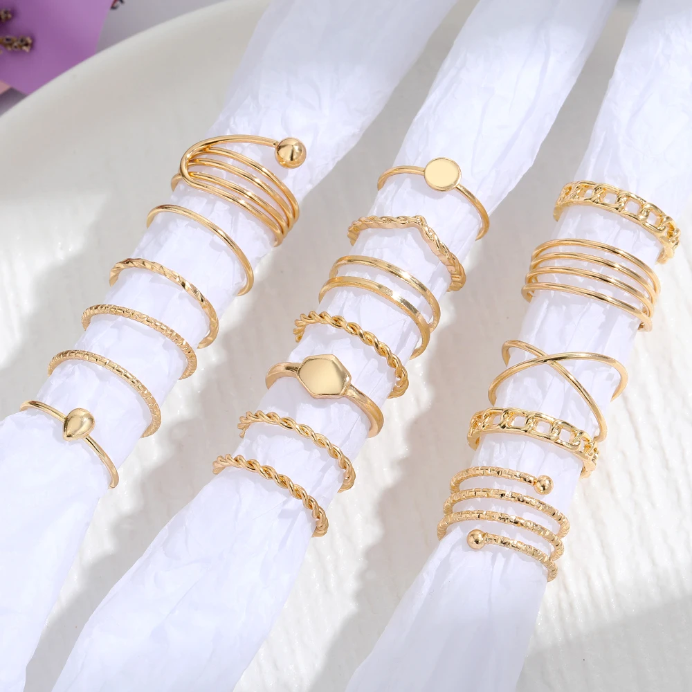 IPARAM فاسق المعادن خواتم للنساء هندسية سلسلة الذهب اللون البنصر Vintage خواتم للنساء مجموعة مجوهرات مقلدة هدايا