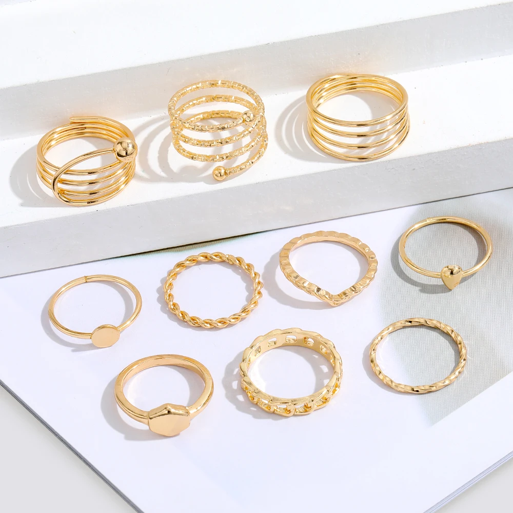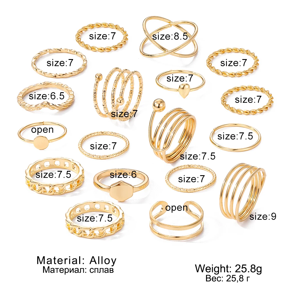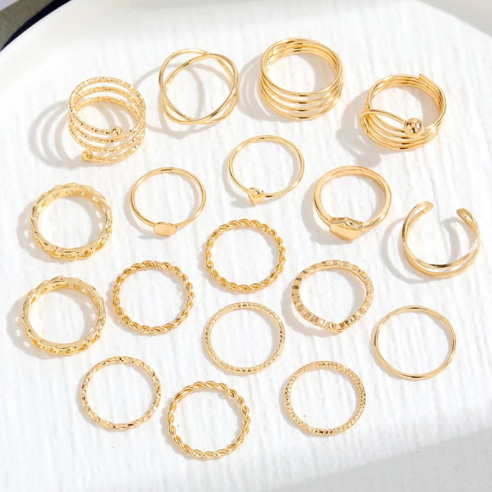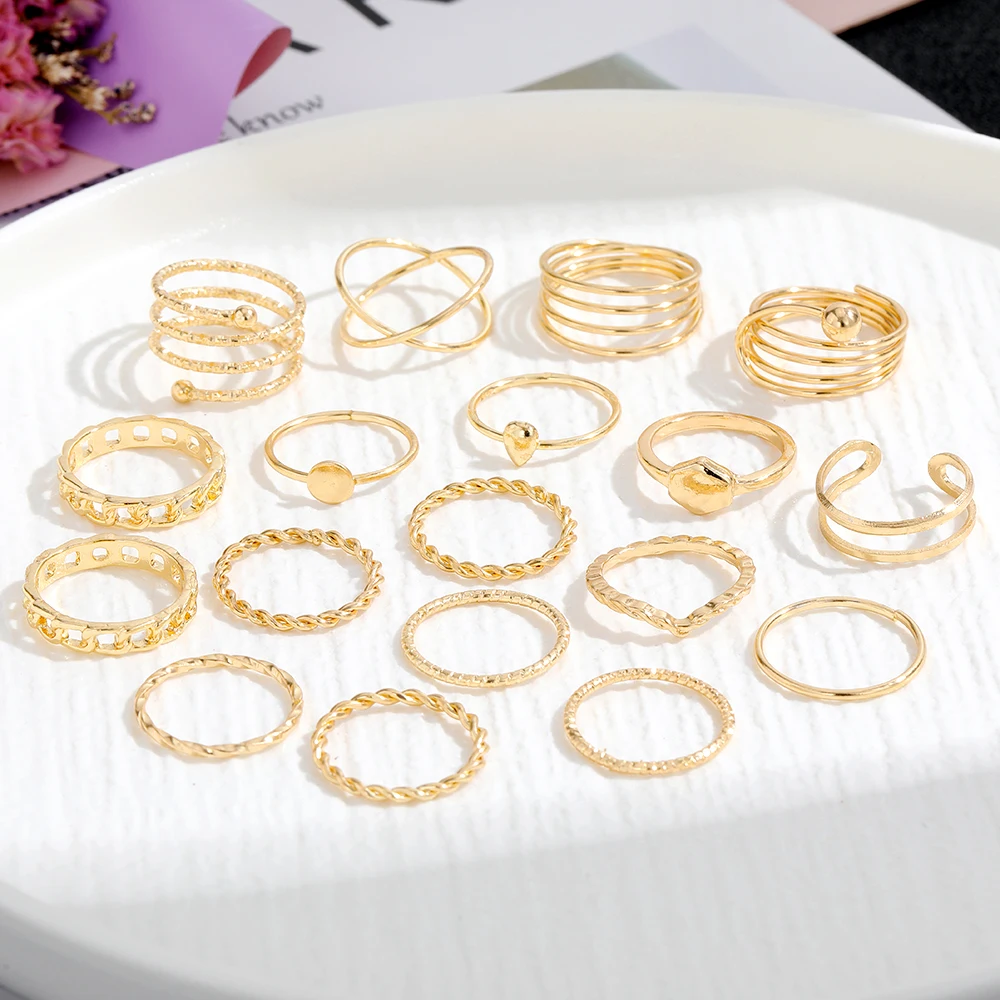 IPARAM فاسق المعادن خواتم للنساء هندسية سلسلة الذهب اللون البنصر Vintage خواتم للنساء مجموعة مجوهرات مقلدة هدايا