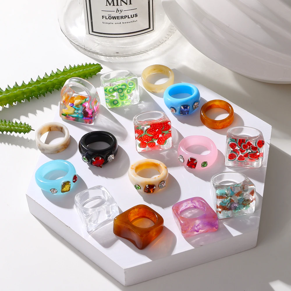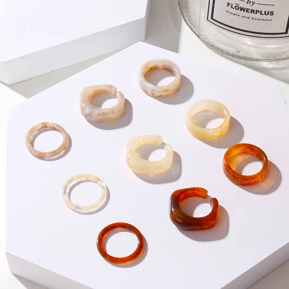IPARAM 2021 جديد ملون شفاف أكريليك غير النظامية الرخام نمط خاتم الراتنج السلحفاة خواتم للنساء مجوهرات للبنات