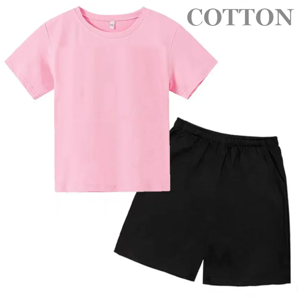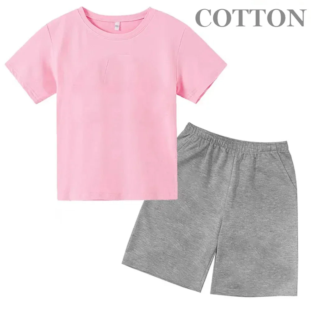 Summer children’s printed short sleeved shorts set made of cotton fabric, casual and fashionable boy and girl toddler T-shirt set, cartoon anime clothing